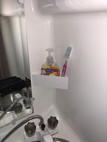 Få mere orden og funktionalitet i dit badeværelse, særligt i kompakte rum som i en campingvogn eller autocamper. Denne praktiske holder er designet til at opbevare blød sæbe og tandbørster effektivt, så dit badeværelse forbliver pænt og ryddeligt. Den universelle udformning gør, at den passer ind i de fleste 90-graders hjørner, og kan nemt fastgøres med dobbeltklæbende tape. Uanset om du søger en smart vask organiser til sæbe eller et fast sted til dine tandbørster, tilbyder denne holder en diskret og funktionel løsning til badeværelset.