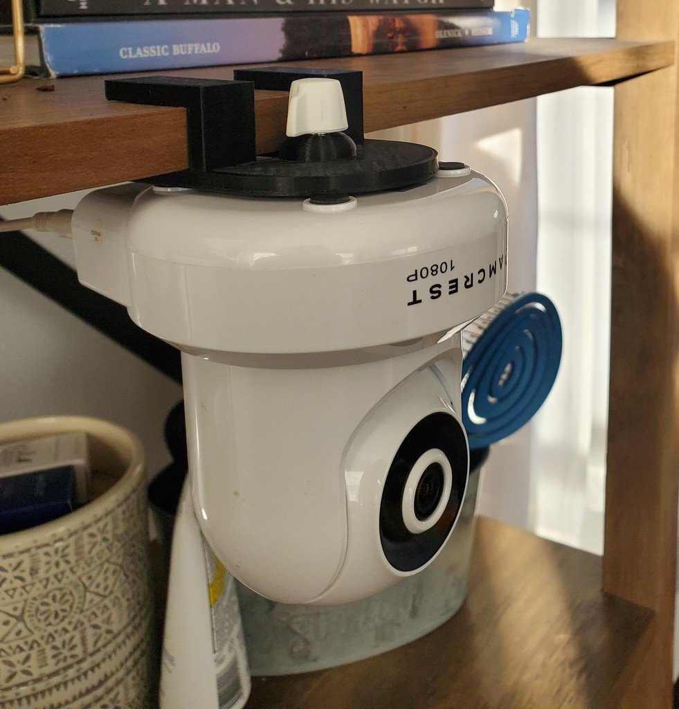 Dette beslag er udviklet til at give en stabil og diskret monteringsløsning til dit overvågningskamera. Beslaget er specifikt designet til at passe til Amcrest Wi-Fi kameraer og er ideelt til placering under en boghylde med en tykkelse på omkring 15,3 mm. Det tilbyder en praktisk metode til at overvåge et rum uden at kameraet fylder på overflader.