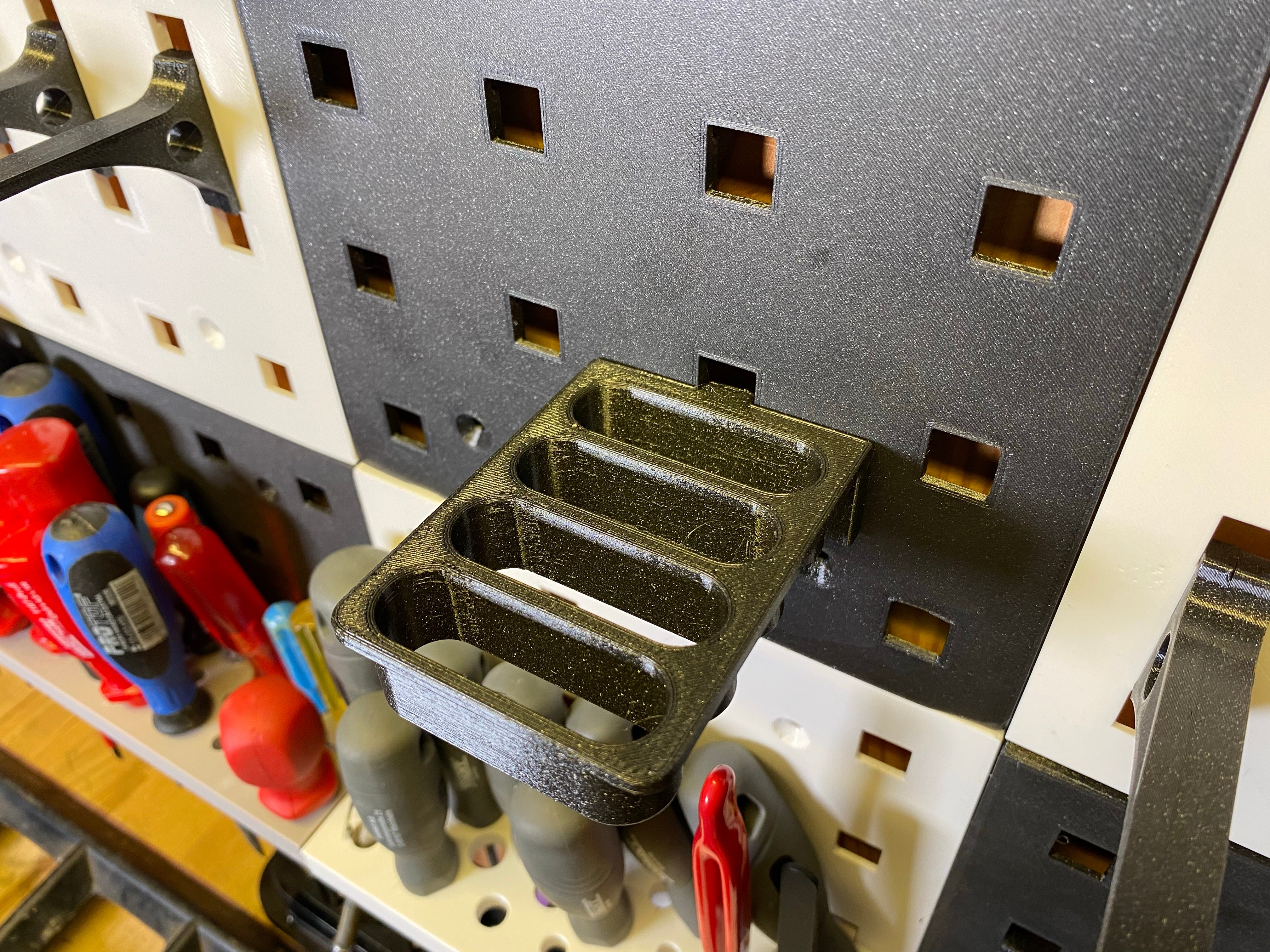 Udover tænger kan denne alsidige holder også benyttes til at organisere diverse små værktøjer, der passer ind i dens dimensioner, og bidrager til en mere strømlinet værktøjsorganisering.