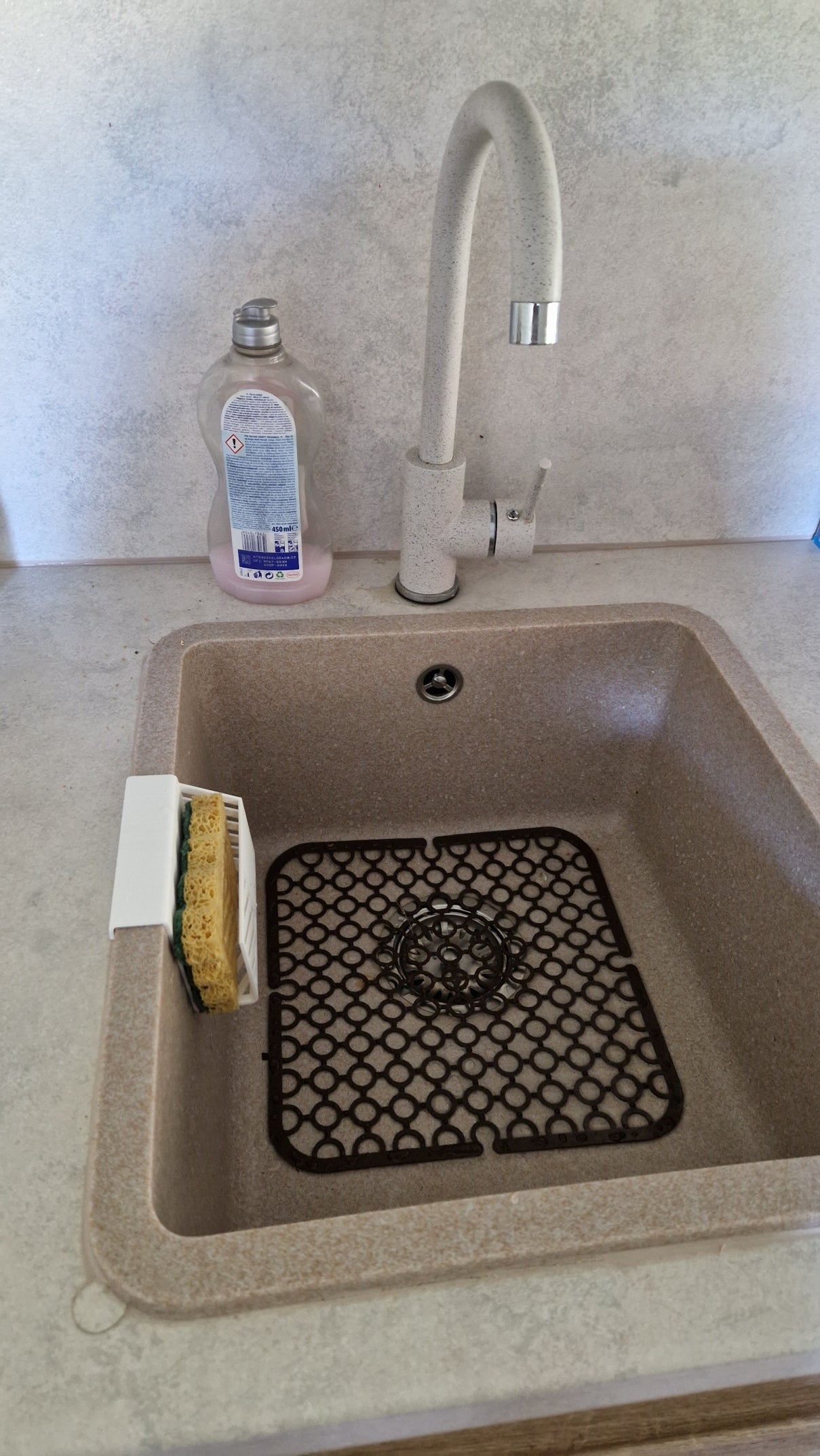 Svampeholderen er specifikt udformet til at passe på kanten af keramiske eller sten køkkenvaske med en bredde på 25 mm. Dens smarte Chevron-mønstrede drænhuller sikrer effektiv afvanding, så din svamp forbliver tør og frisk.