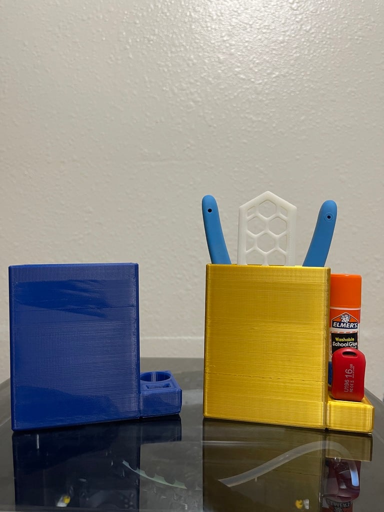 Denne opbevaringskasse er specifikt designet til Creality K1 3D-printeren og giver en dedikeret plads til mindre tilbehør. Den er konstrueret til at passe diskret ind i printerens bageste del via friktionspasning, hvilket holder den sikkert på plads. Kassen tilbyder en praktisk løsning til at samle og opbevare ofte brugt værktøj, USB-sticks og limstænger, så de er let tilgængelige, men samtidig ude af syne. Formålet er at bidrage til et mere organiseret arbejdsområde ved at give disse små genstande en fast plads.