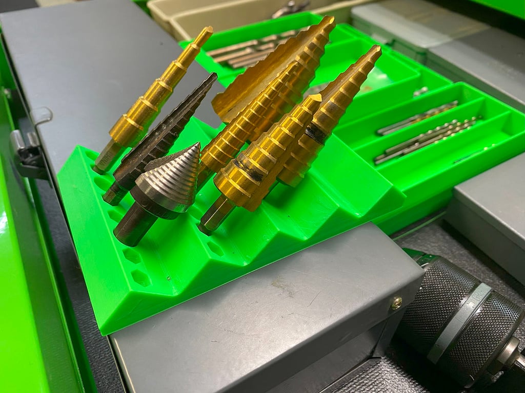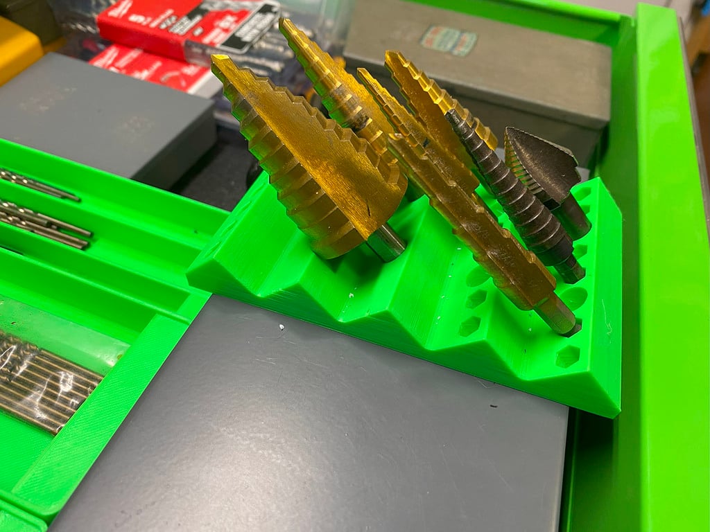 Denne værktøjsorganisator er designet til at give en overskuelig opbevaringsløsning for dine undersænkere og trinbor. Den hjælper med at holde dine værktøjer samlet og let tilgængelige, hvilket minimerer spildtid og frustration på arbejdspladsen. Uanset om du er en erfaren håndværker eller en dedikeret hobbyist, kan denne holder bidrage til en mere organiseret og effektiv arbejdsgang. Da mange bor har forskellige dimensioner, er denne organiseringsløsning tænkt som et fleksibelt udgangspunkt, der kan tilpasses individuelle behov og specifikke borsæt. Få bedre overblik og skab orden i dit værktøjskab med denne praktiske opbevaringsenhed.
