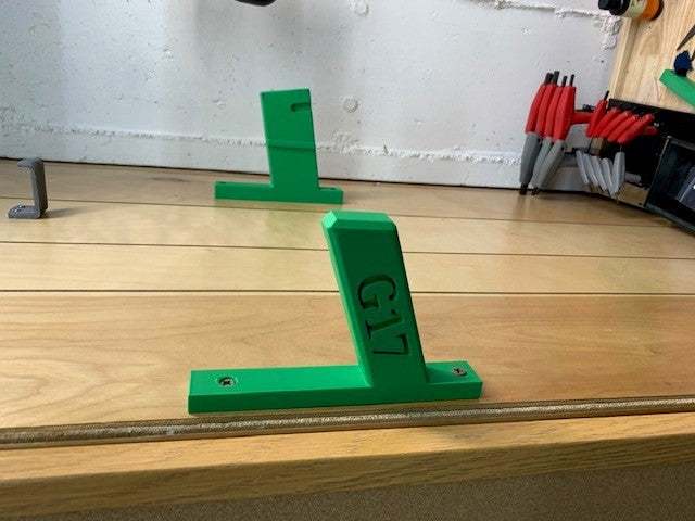 Med denne vægmontering kan din Glock 17 præsenteres på en organiseret måde, samtidig med at den holdes inden for nem rækkevidde.