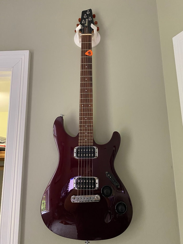Dette funktionelle guitar vægophæng tilbyder en elegant og pladsbesparende løsning til opbevaring af dit musikinstrument. Ved at montere din guitar på væggen opnår du ikke blot en ryddelig plads, men også en dekorativ fremvisning af dit instrument, som altid er inden for rækkevidde. Dette vægbeslag til guitar er velegnet til lette elektriske guitarer. Hvis du ønsker at hænge tungere modeller, som f.eks. en Les Paul, anbefales det at anvende et materiale, der giver øget styrke, for at sikre optimal og stabil støtte til din guitar. Med denne guitar vægmontering bliver dit instrument en integreret del af rummets indretning.