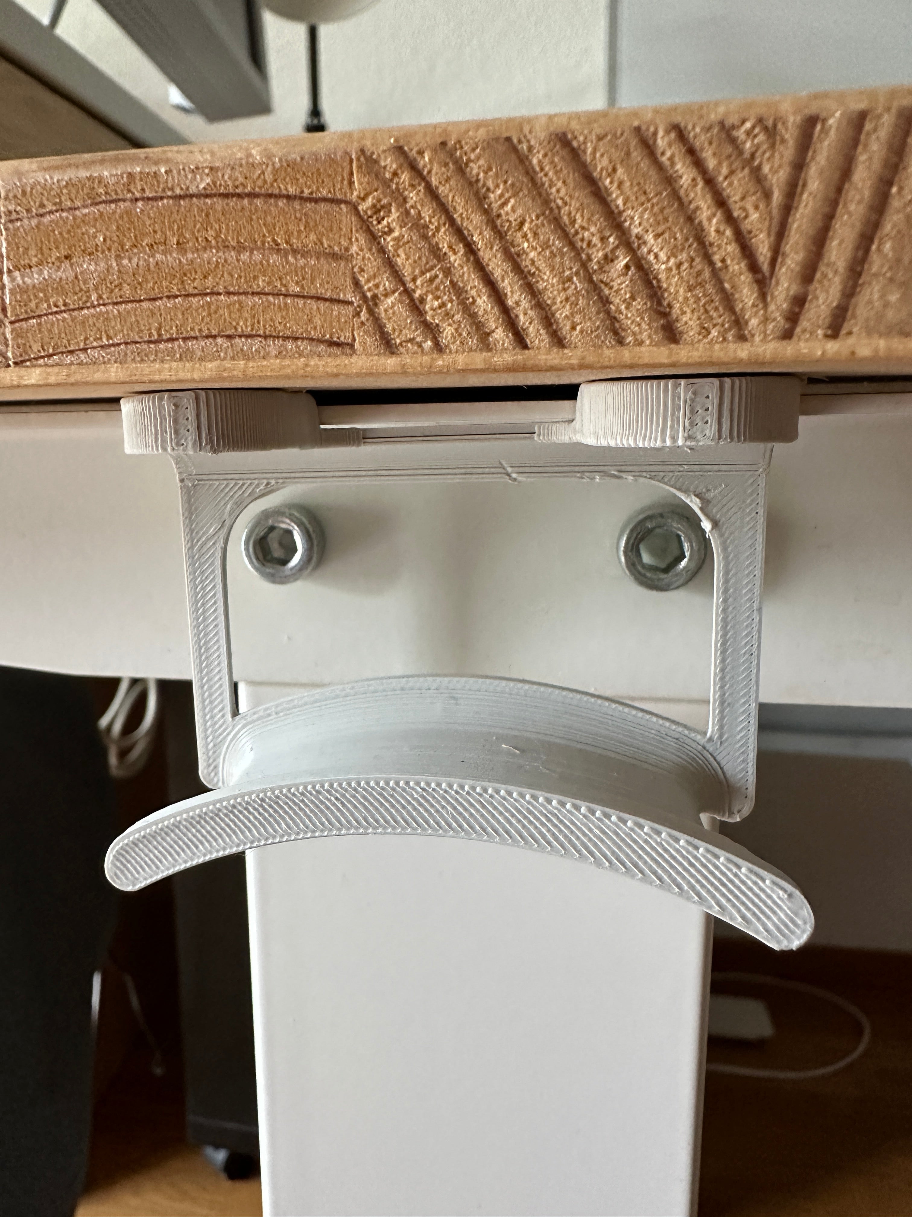Denne elegante hovedtelefonholder er designet til at optimere din arbejdsplads ved at give dine Sony WH-1000XM5 hovedtelefoner en sikker og diskret opbevaringsløsning under skrivebordet. Du slipper for rod på skrivebordet og har altid dit headset lige ved hånden, når du skal bruge det. Den minimalistiske udformning sikrer, at holderen passer sømløst ind i enhver indretning, uden at tage unødig opmærksomhed. Selvom den er skræddersyet til Sony WH-1000XM5, kan denne hovedtelefonholder også anvendes til andre hovedtelefonmodeller med et lignende hovedbånd, hvilket gør den til en alsidig løsning for dit lydudstyr. Installationen er ligetil og kræver kun et par skruer for at fastgøre den under dit skrivebord, så du hurtigt kan nyde fordelene ved et organiseret og funktionelt arbejdsområde.