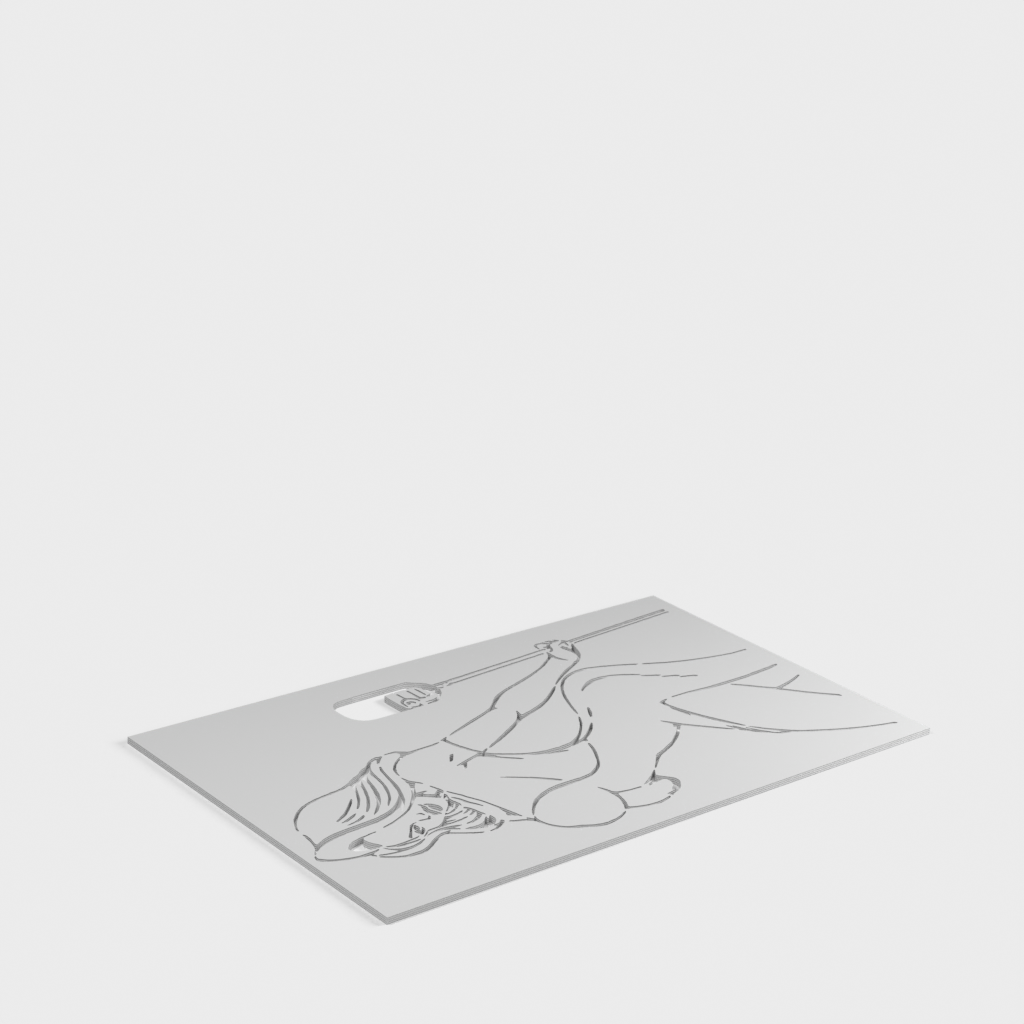 Denne skabelon med Jessica Rabbit er velegnet til kreative projekter, hvor man ønsker at tilføre et præg af karakter og glamour. Designet er anvendeligt til dekorationer, malerier eller scrapbogsprojekter og muliggør en præcis gengivelse af den ikoniske figur. Stencilen kan anvendes til at skabe unikke kunstværker eller som en del af et temaarrangement. Den er designet til nemt at kunne anvendes på forskellige overflader, hvilket giver mulighed for at tilpasse og eksperimentere med udtrykket.