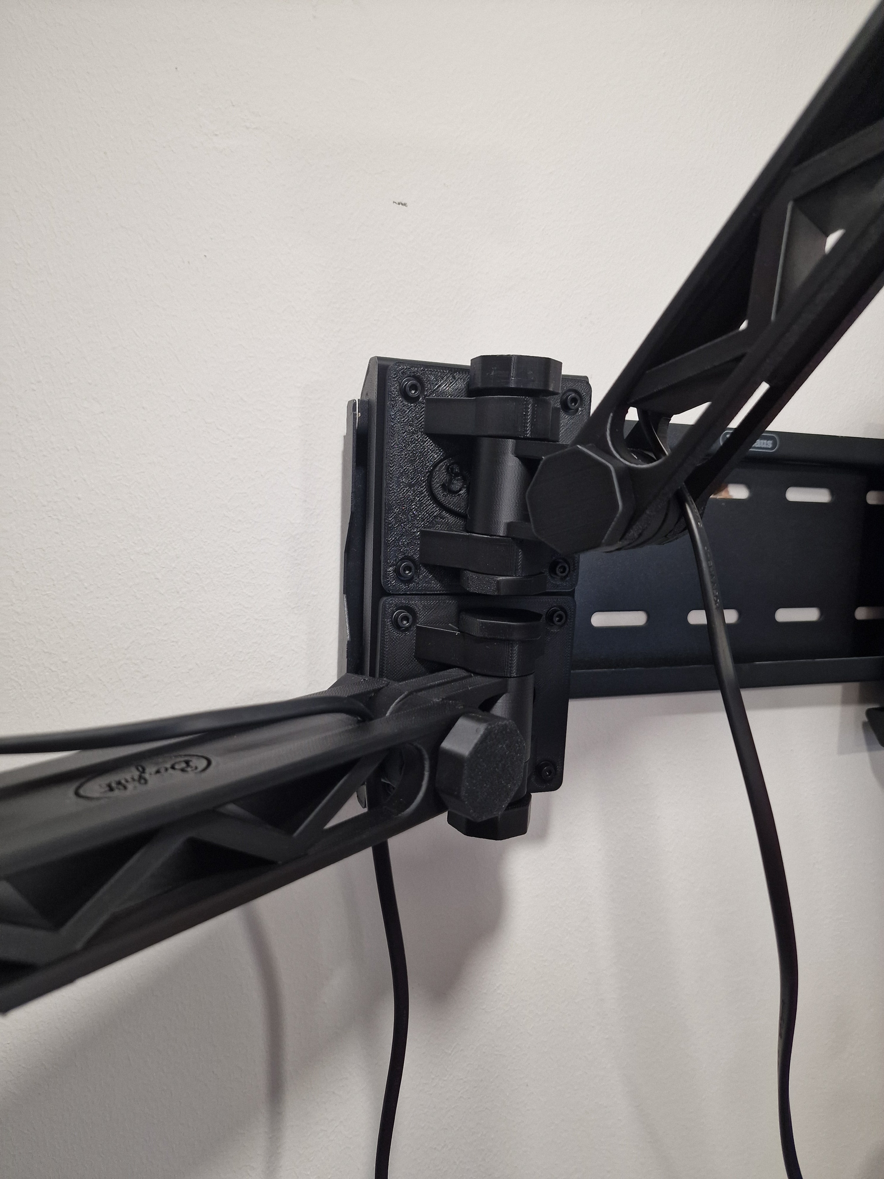 Dette alsidige vægbeslag med justerbar arm tilbyder en praktisk løsning til at organisere dit studieudstyr. Designet er en smart tilføjelse til enhver arbejdsstation, især for dig, der beskæftiger dig med fotografering eller videoproduktion. Beslaget inkluderer en adapter, som gør det muligt at fastgøre armen til et eksisterende TV-vægbeslag, hvilket giver en robust og pladsbesparende montering direkte på væggen.
