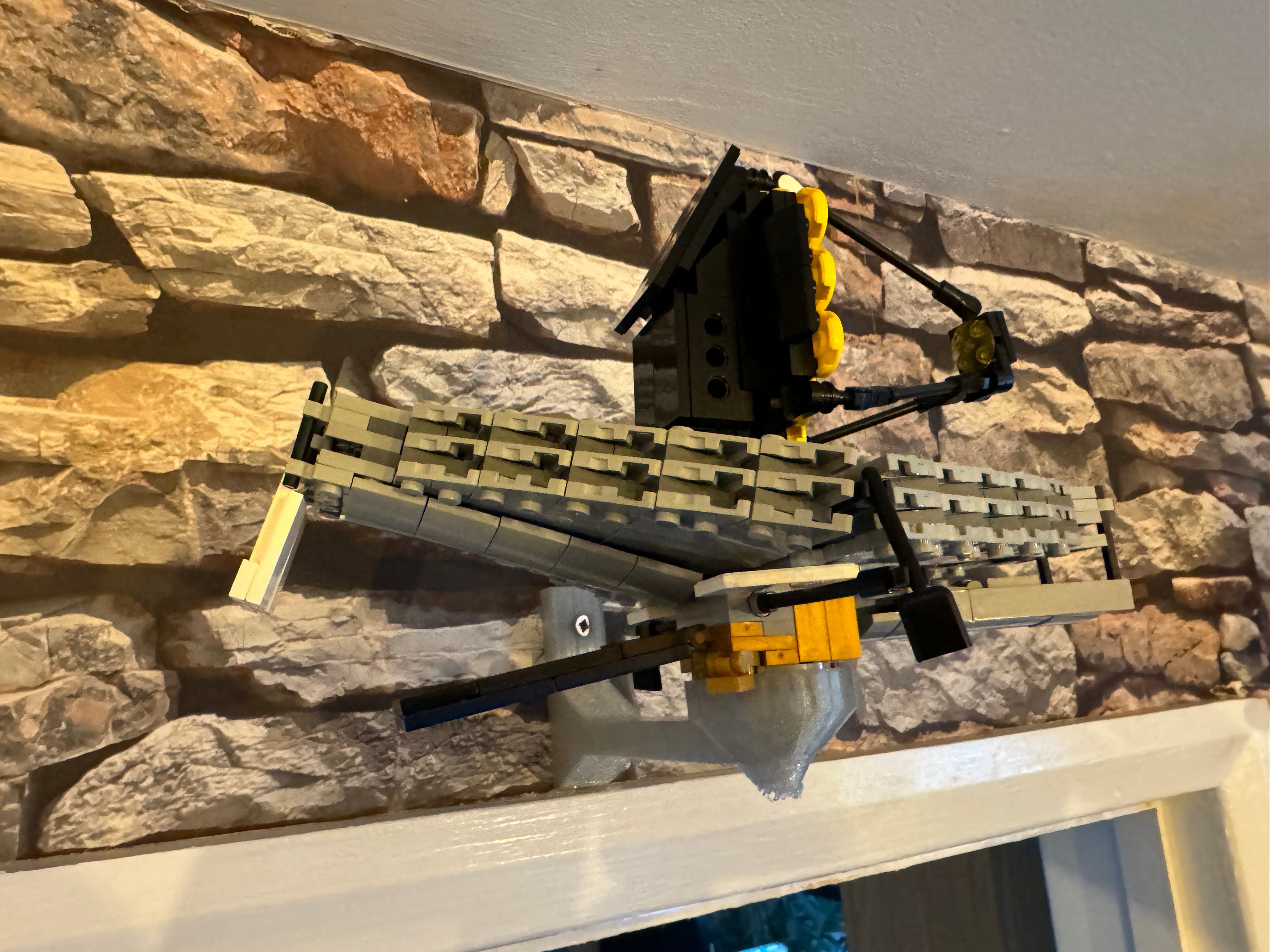 Dette vægophæng er skræddersyet til dit Lego-kompatible James Webb Rumteleskop (JWST) model, som typisk består af 487 byggeklodser. Ved at bruge dette smarte ophæng kan du elegant præsentere din rumteleskopmodel på væggen og skabe et indtryk af, at den svæver frit i rummet. Vægmonteringen er designet til at holde modellen sikkert på plads, hvilket gør den til en fremragende løsning for enhver samler eller rumentusiast. Den specialdesignede holder sikrer, at din model sidder stabilt, og for yderligere at forhindre utilsigtede stød, kan en smule klæbende materiale som Blu-tac anvendes i koppen. Denne løsning er ideel for dem, der søger effektive Lego mounts and holders til at fremvise deres samleobjekter på en pladsbesparende og visuelt tiltalende måde.