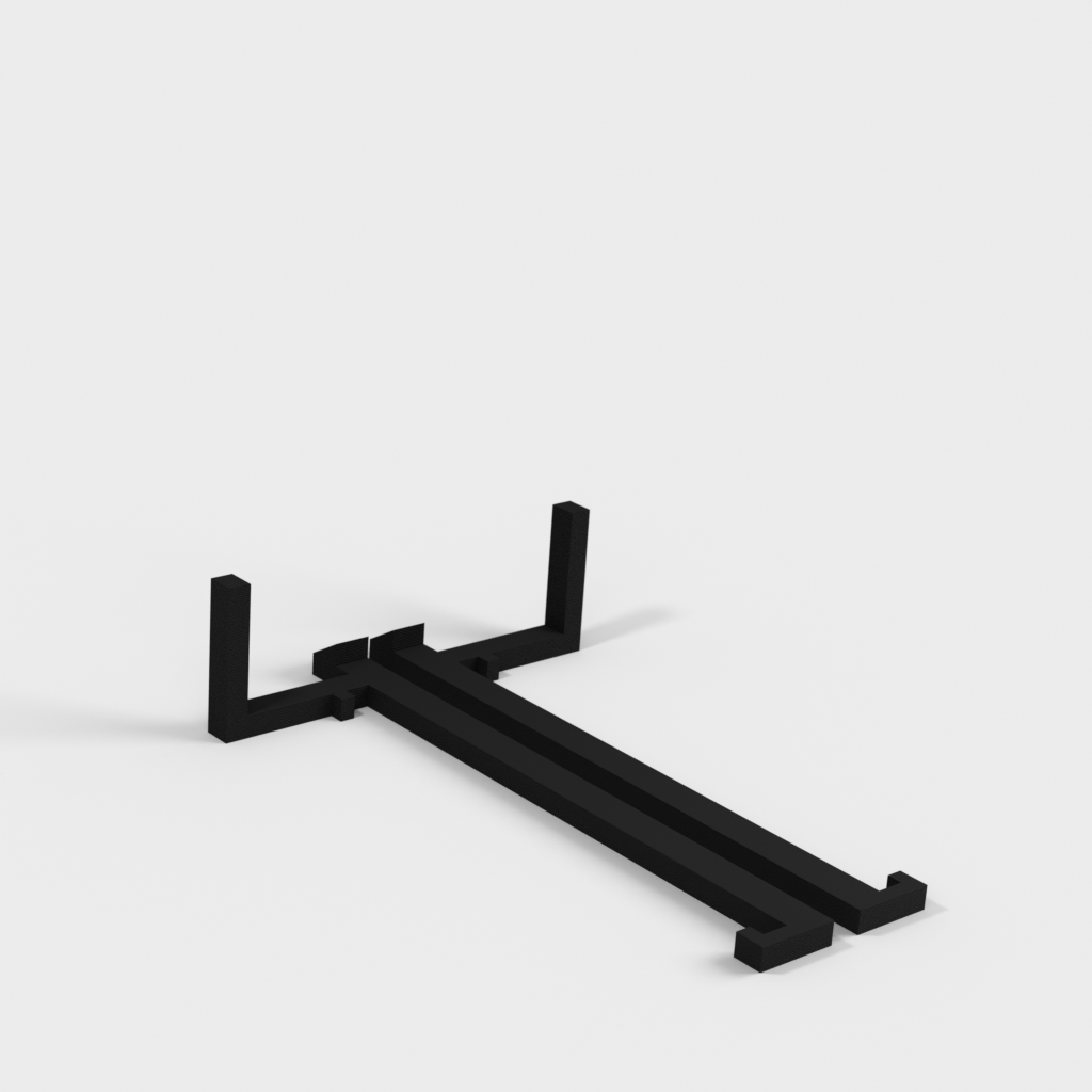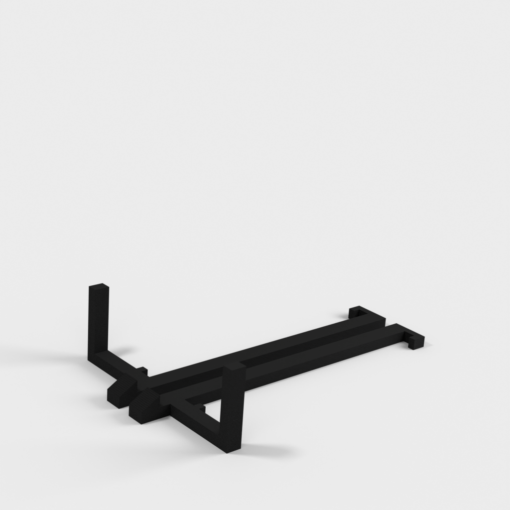 Dette beslag er udviklet til at montere din centerhøjttaler diskret under dit LG TV, model 49SK8000PLB. Løsningen gør det muligt at placere højttaleren uden at skulle bore huller i væggene. Beslaget holder centerhøjttaleren i flugt med TV'ets nederste kant, hvilket bidrager til et ryddeligt udtryk i stuen. Monteringen foregår ved at skubbe beslaget ind i TV'ets gitter, hvor det fleksibelt tilpasser sig og låses fast. Dette giver en stabil placering af højttaleren, der integreres elegant med dit TV.