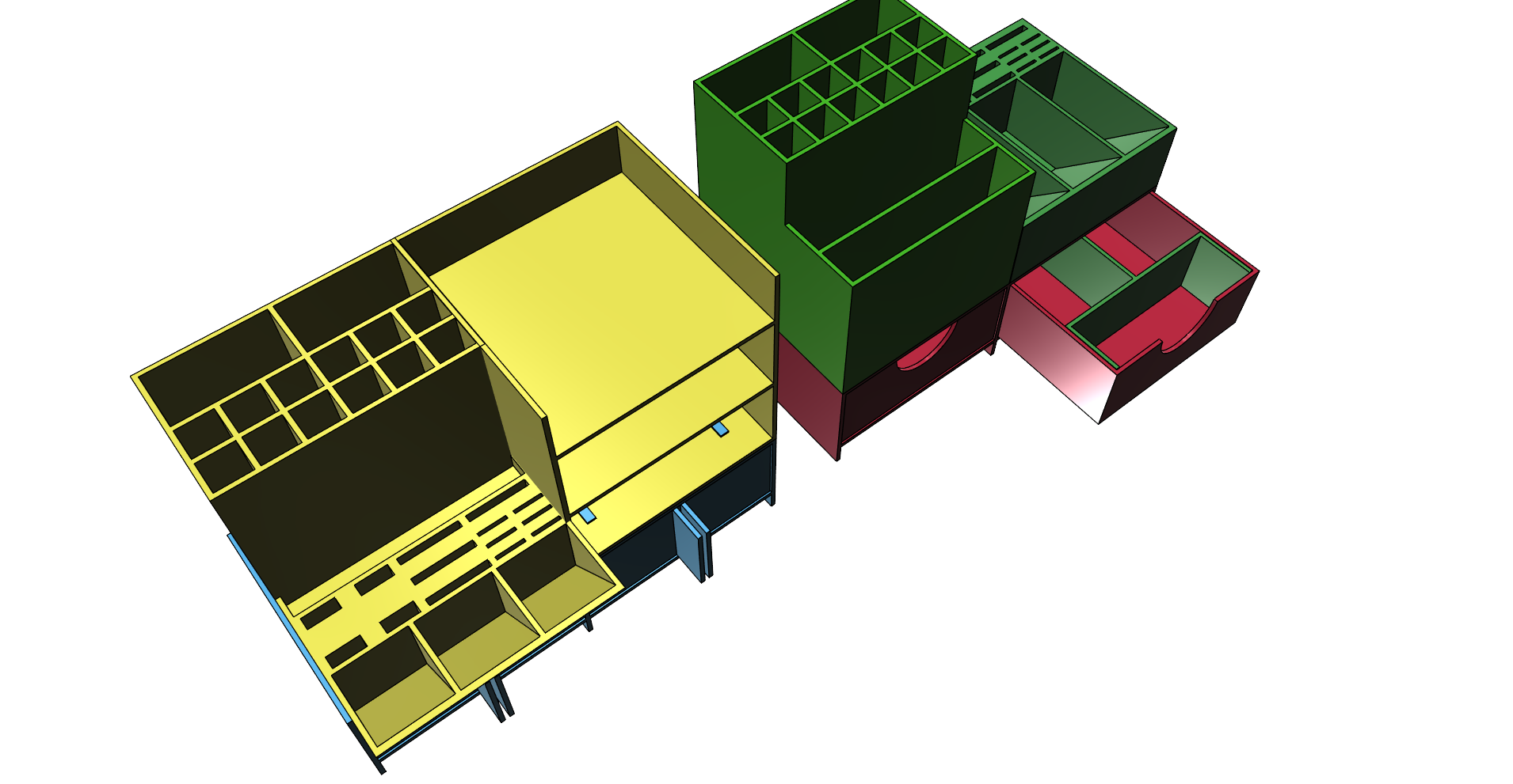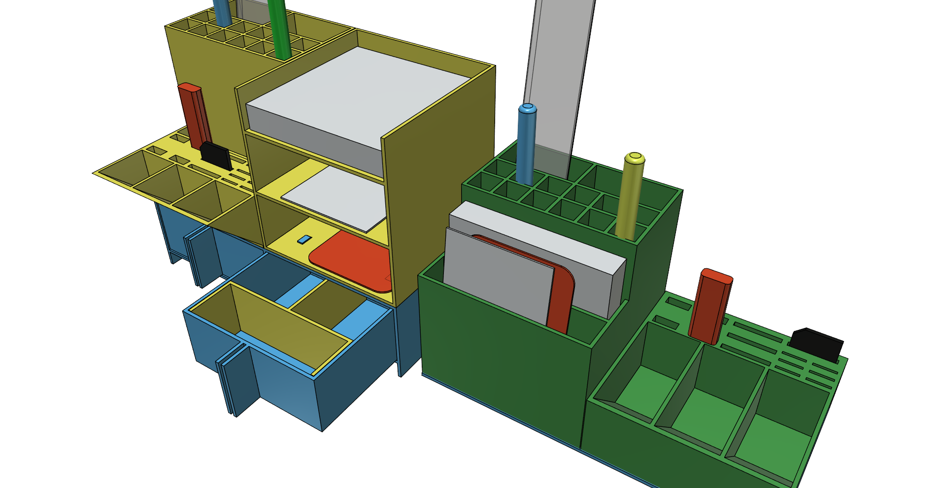 Organisatoren tilbyder specialdesignede rum, herunder huller på 13.5 x 13.5 mm, der er ideelle til penne og blyanter. Derudover findes der dedikerede pladser til USB-stik, SD-kort og micro SD-kort, samt et praktisk rum til papirblokke på 9 x 9 cm. Dette gør den til en omfattende opbevaringsløsning for en række småting.
