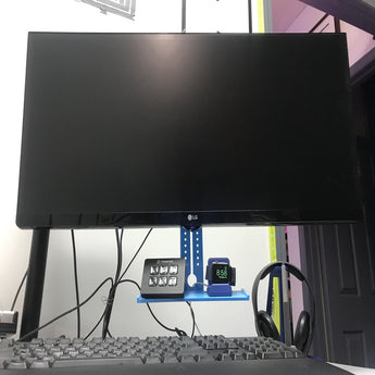 Hylden er ideel til at holde styr på din Apple Watch-oplader, din Elgato Stream Deck Mini og din telefon, men der er også rigelig plads til kuglepenne, post-it notes og andre småting. De integrerede huller sikrer desuden effektiv kabelstyring, så dine kabler holdes pænt ude af syne og forhindrer rod på skrivebordet.