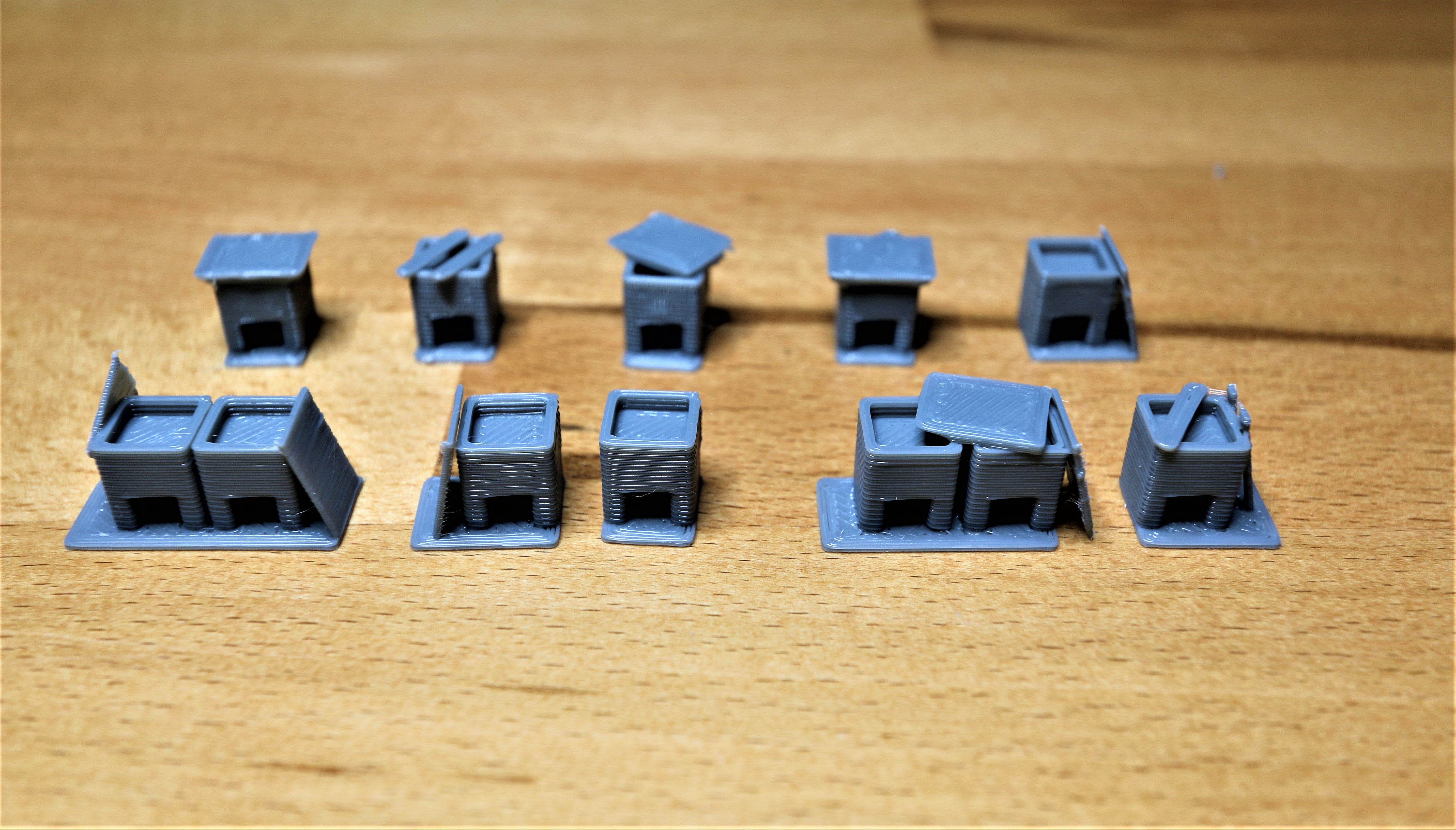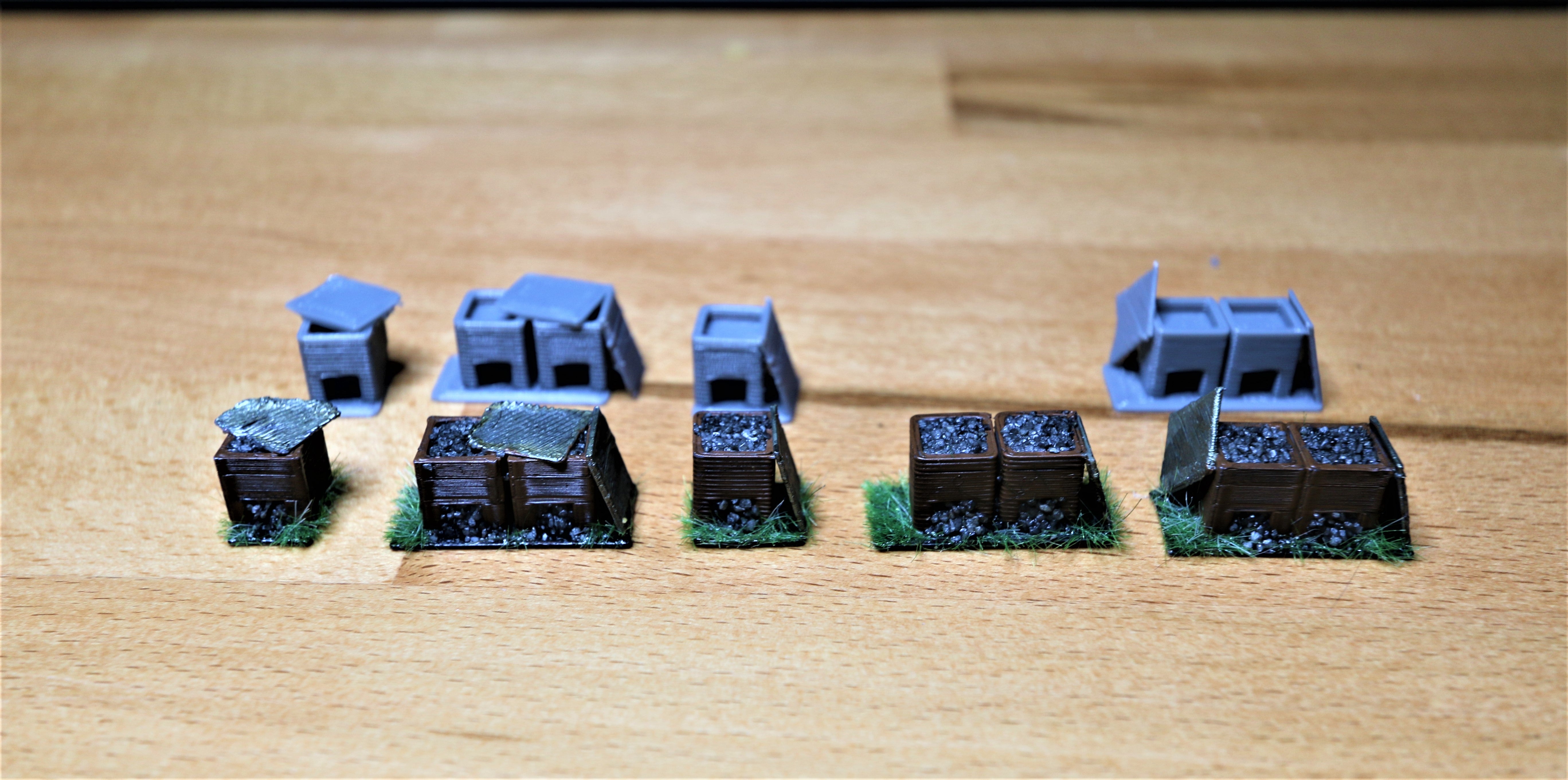 Sættet indeholder et udvalg af 10 forskellige designs, som giver dig stor fleksibilitet i udformningen af dit modelunivers. Fra lukkede beholdere til kasser med åbne låg eller stablede træbjælker – hver variant bidrager til at fortælle en unik historie på din modelbane. Du kan yderligere forbedre kassernes udseende ved at male dem og tilføje realistisk løsmasse, hvilket gør dem til en integreret del af dit landskab.