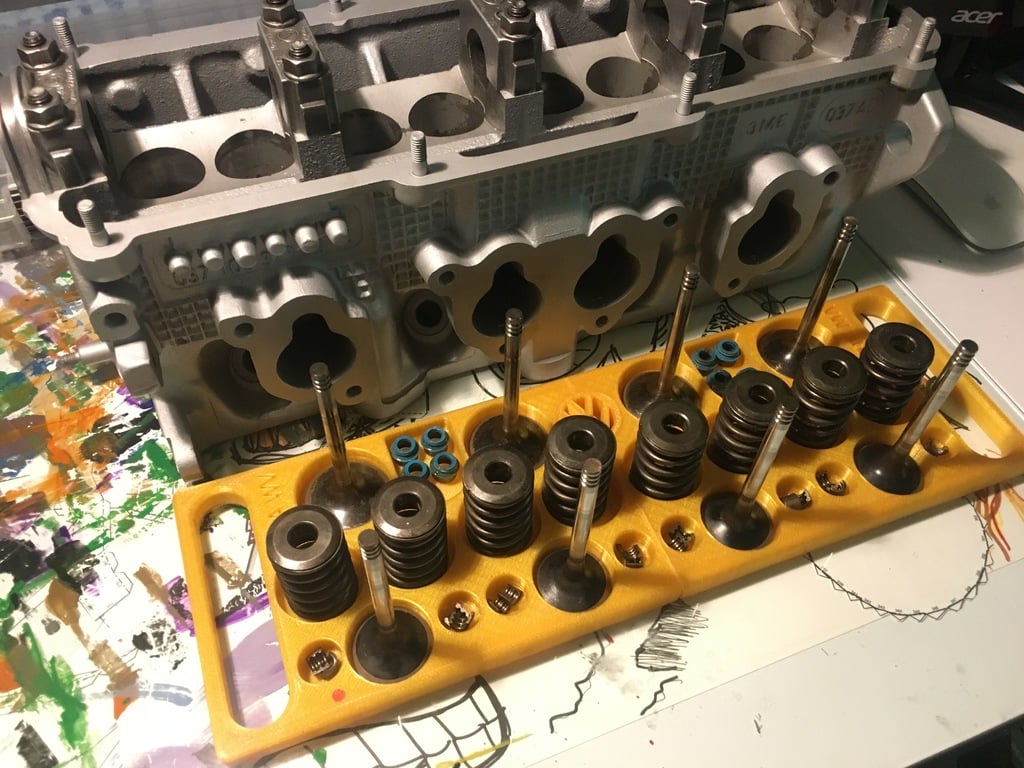 - Holder komponenter organiseret under cylinderhovedarbejde.