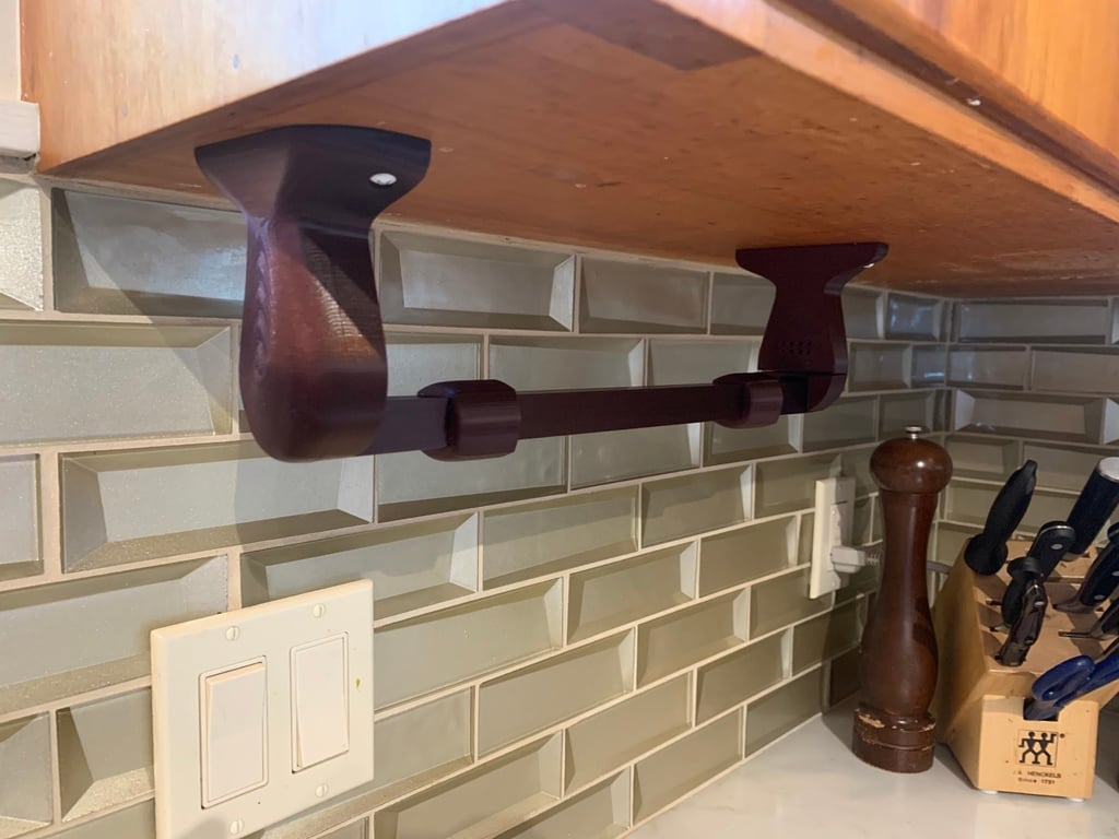 Holderen er optimeret til at rumme papirhåndklæder med en længde på 11 tommer og en diameter på 6 tommer, så du kan være sikker på en god pasform. Materialet, Prusa PLA i en mystisk brun nuance, bidrager med en flot æstetik, der med sin træagtige effekt og skiftende farver i lyset, tilføjer et stilrent præg til rummet.