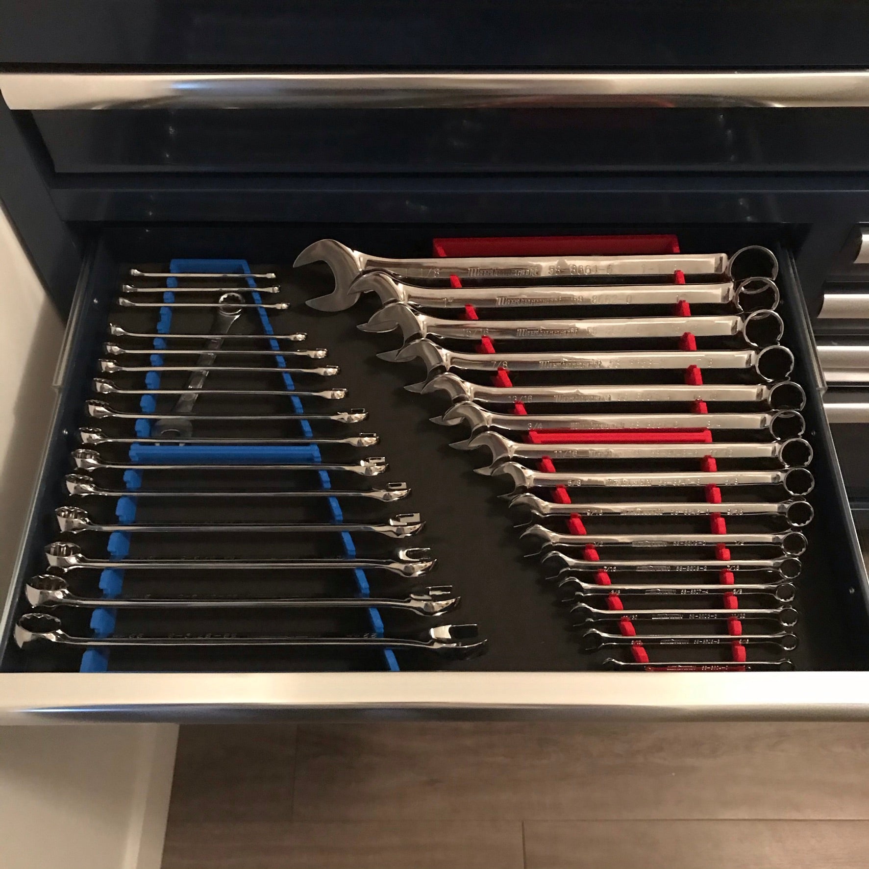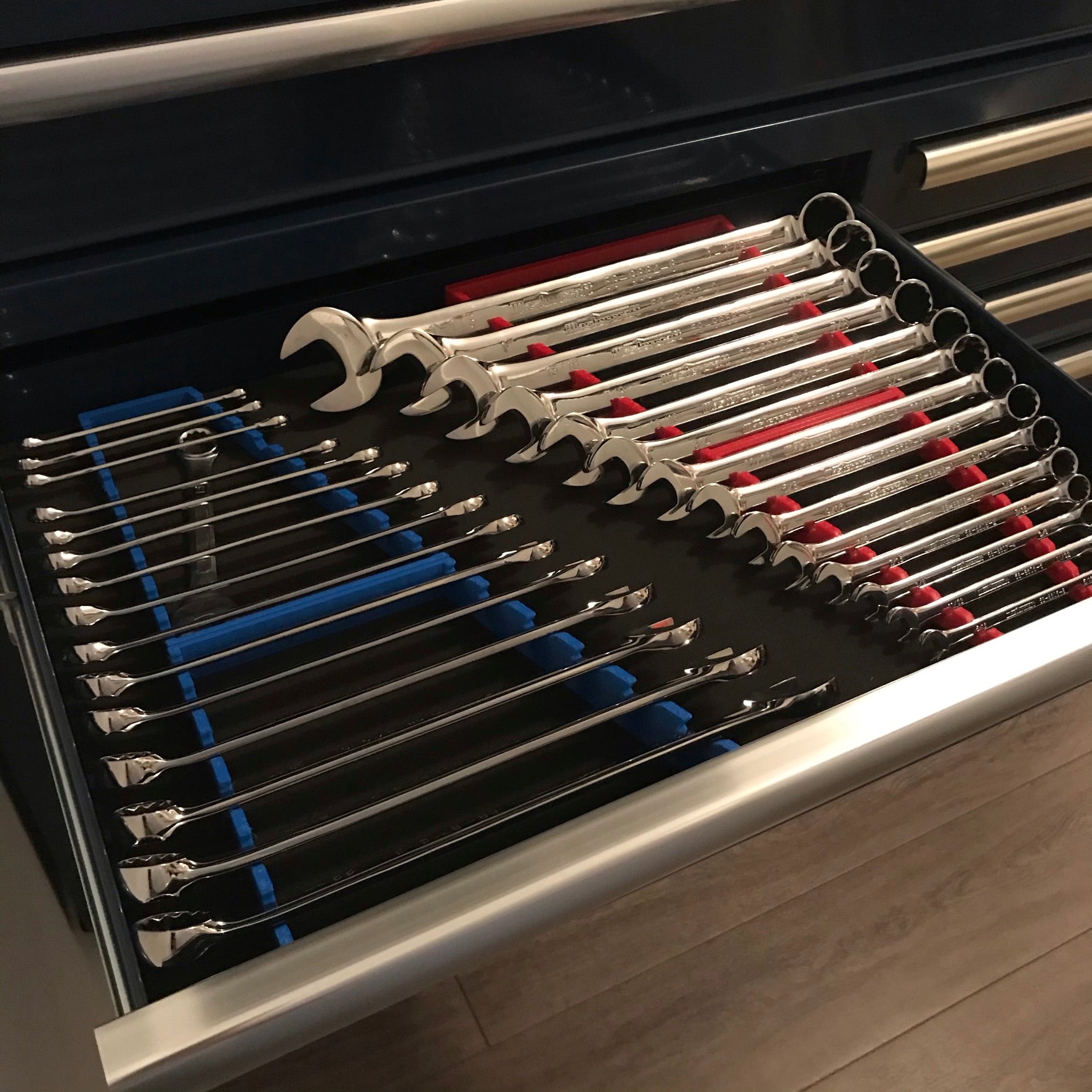 Dette pladsbesparende organizer-sæt er designet til at holde dine kombinationsnøgler organiseret og let tilgængelige i din værktøjskasse. Aldrig mere tid spildt på at lede efter den rette nøgle; med dette system er hvert værktøj på sin faste plads.