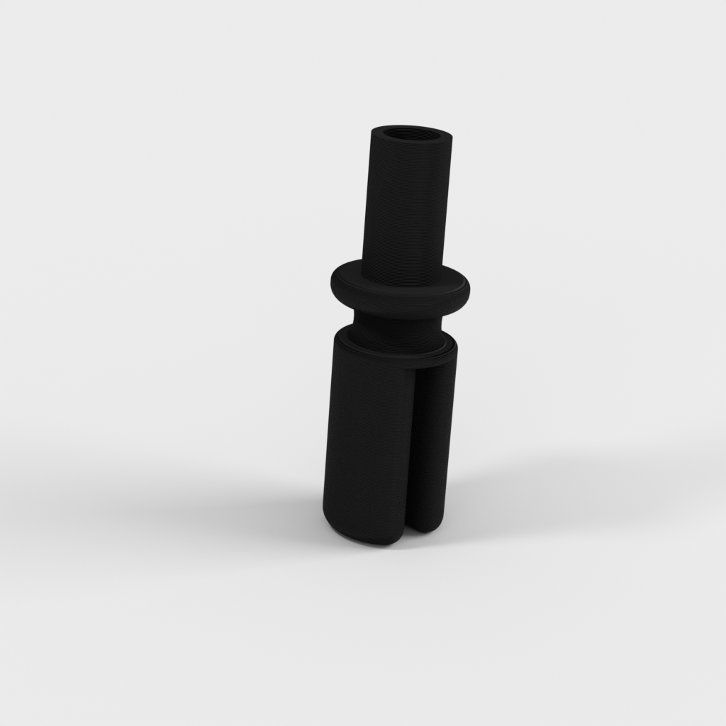Denne plekterholder er udviklet til at forbedre funktionaliteten af et standard guitar gulvstativ. Den erstatter den eksisterende endekap på stativet og tilbyder en integreret løsning til opbevaring af dine guitarplektre. Designet sikrer, at stativets originale gummidel, som giver dæmpning og greb for guitaren, bevares og sidder korrekt.