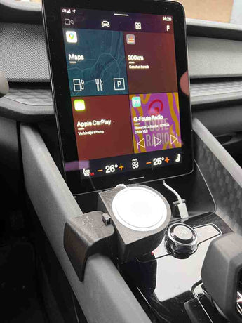 Denne MagSafe telefonholder er specifikt designet til at integrere problemfrit i din Polestar 2. Holderen giver en sikker og stabil placering til din iPhone, der er udstyret med MagSafe-teknologi. Den stærke magnetiske forbindelse sikrer, at din telefon forbliver fastgjort under kørslen, selv på ujævne veje. Med denne holder er din telefon altid inden for rækkevidde og let at betjene, uanset om du bruger den til navigation, musikafspilning eller håndfri opkald. Dens diskrete design komplementerer bilens interiør, hvilket giver en funktionel løsning uden at forstyrre kabinens æstetik.