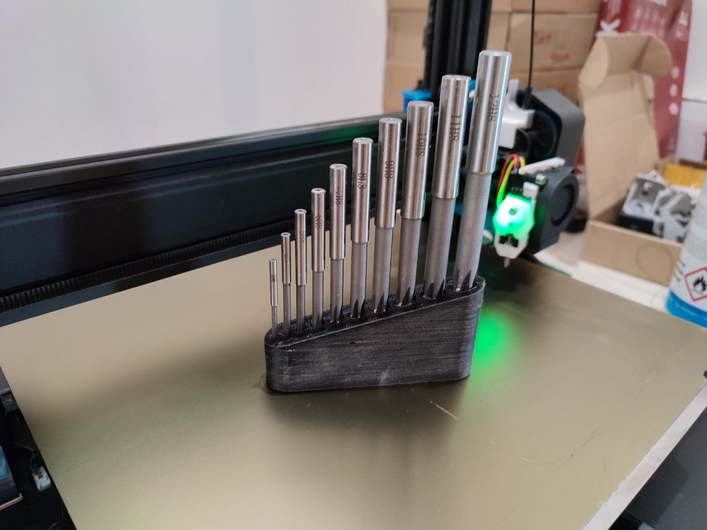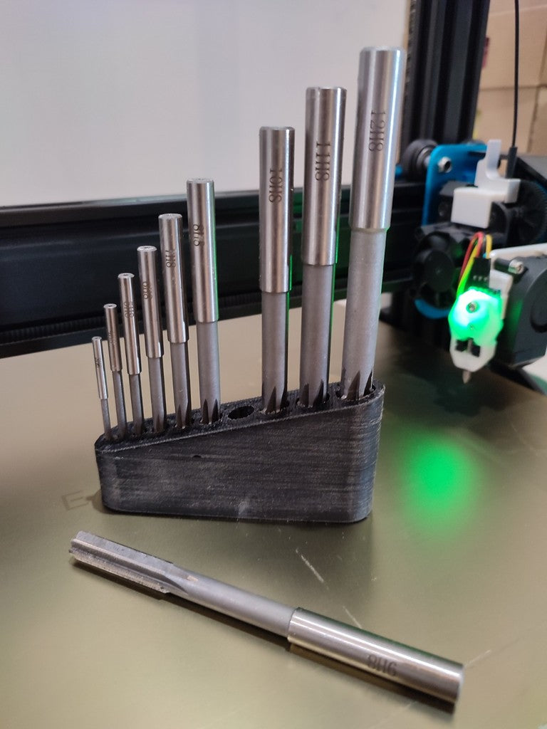 - Holder bor og reamere i størrelserne 3, 4, 5, 6, 7, 8, 9, 10, 11 og 12 mm organiseret.