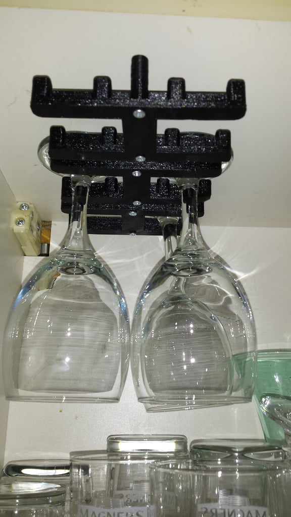 Denne vin glasholder er designet til at rumme to store vinglas, hvilket tilbyder en praktisk løsning til opbevaring. Den kan bruges, når du ønsker at frigøre plads på bordet under en middag eller et socialt arrangement. Vin glasholderen bidrager til at holde dine glas organiserede og inden for rækkevidde. Dens enkle udformning gør den velegnet til forskellige indretningsstile, og den kan let integreres i enhver borddækning, hvor den tilbyder en struktureret præsentation af dine glas.