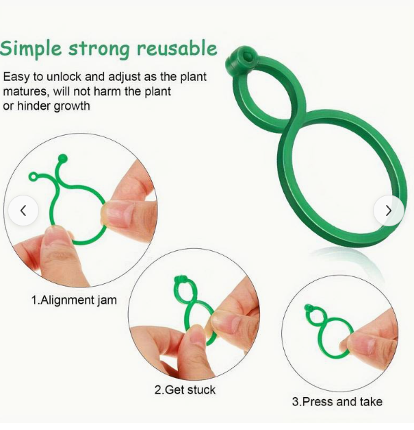 Disse planteklips er designet til at give optimal støtte til dine klatreplanter. De hjælper med at guide væksten af vinstokke, slyngplanter og andre lignende vækster, så de holdes oprejst og organiseret. Dette fremmer et sundt og effektivt vækstmiljø, hvor planterne får den nødvendige plads til at trives. Clipsenes konstruktion sikrer, at de forbliver sikkert på plads, efterhånden som planterne vokser. De kan bruges både indendørs til potteplanter og udendørs i haven, hvilket gør dem til en alsidig løsning for enhver planteentusiast.
