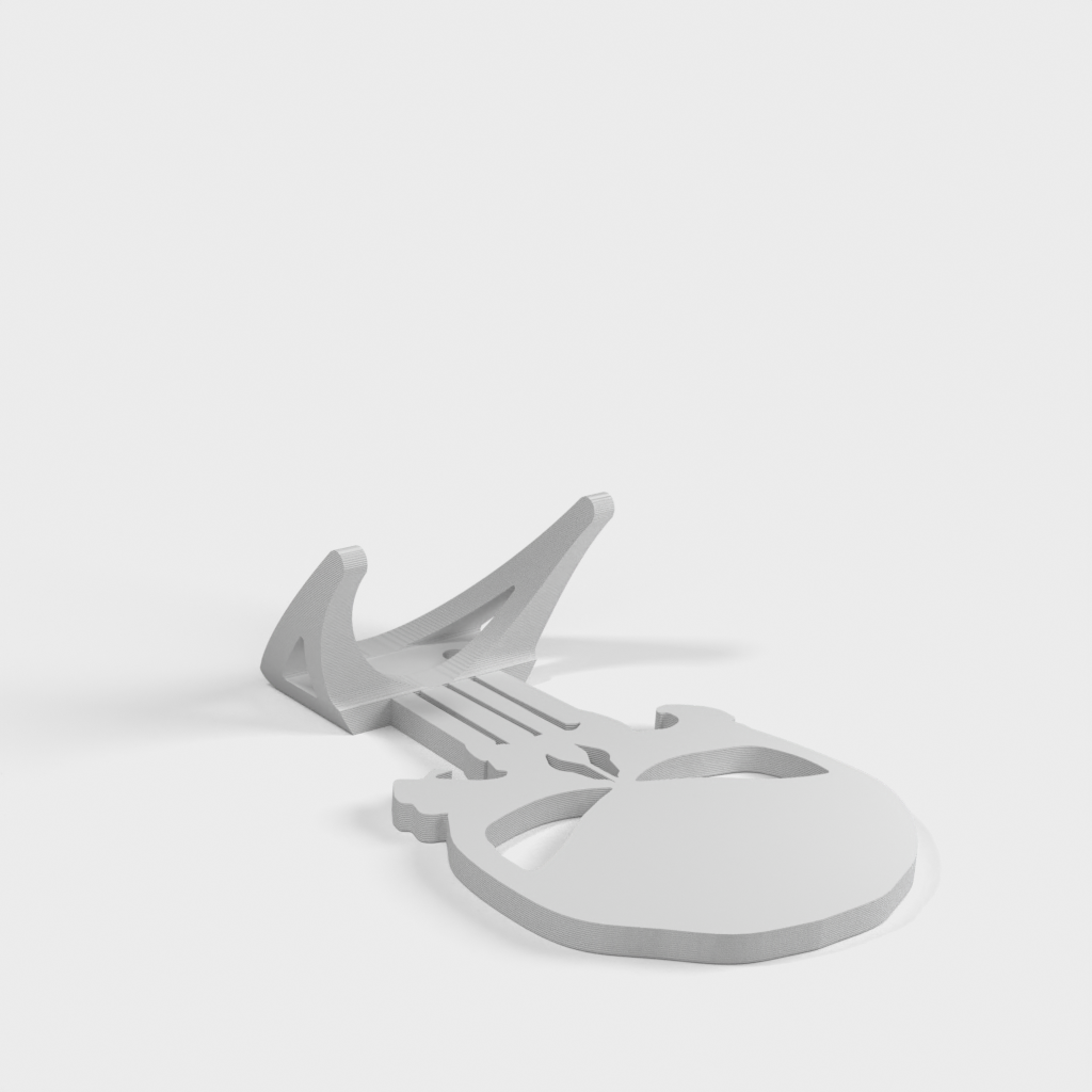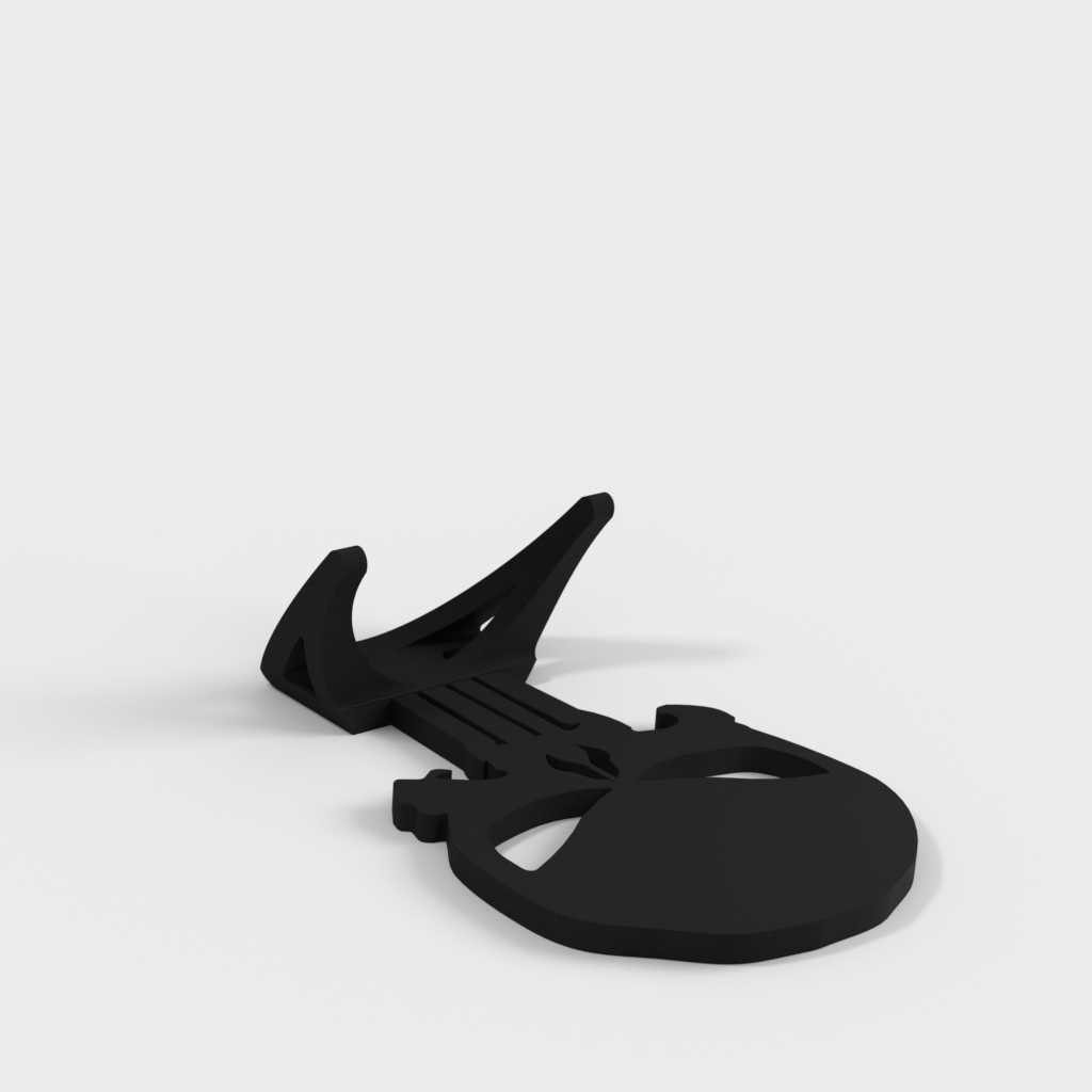 Dette vægophæng til skateboard er designet til at give en sikker og æstetisk løsning til opbevaring af dit skateboard. Med sit karakteristiske design, der skjuler skruehuller på Punisher-hovedet, tilbyder det et strømlinet og rent udseende på væggen. Dette Punisher skateboard vægophæng måler cirka 8,5" x 5" og er velegnet til at udstille både standard skateboards, longboards og elektriske skateboards. Det er en praktisk måde at holde dit udstyr organiseret og samtidig fremvise det som en del af din indretning. For at sikre optimal stabilitet kan en lille mængde 3M udendørs tape anvendes for at holde den øverste del flad og i niveau med væggen, hvilket giver en robust løsning for dit skateboard.