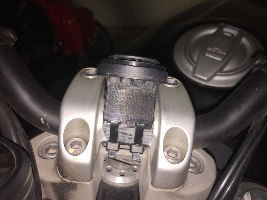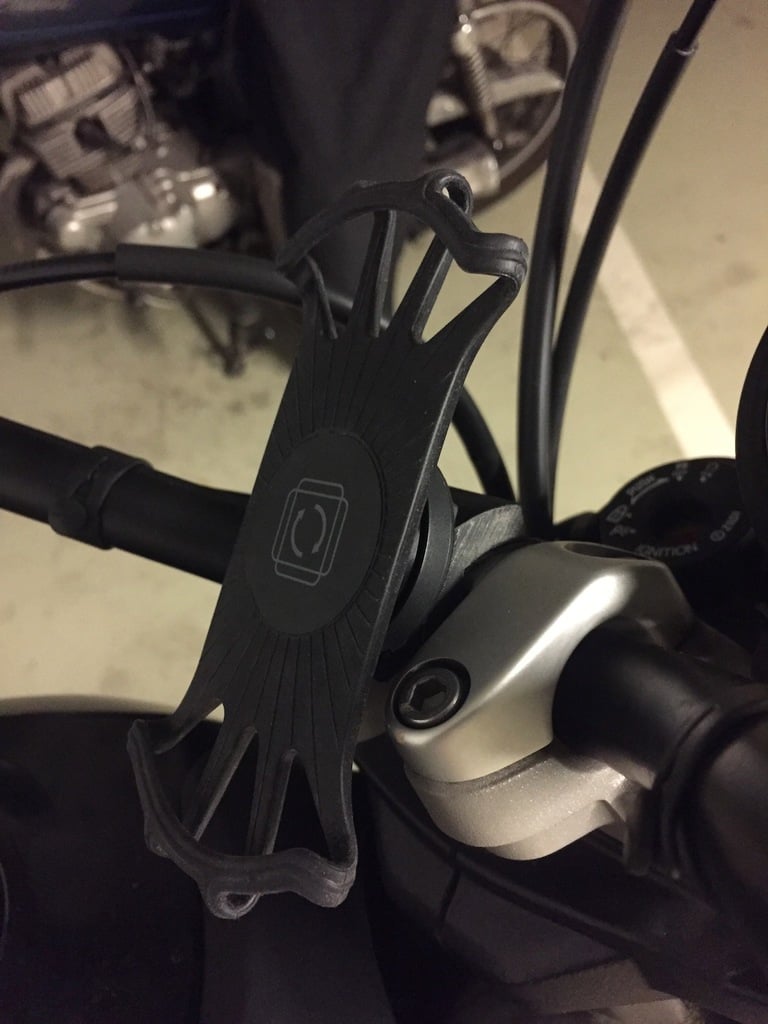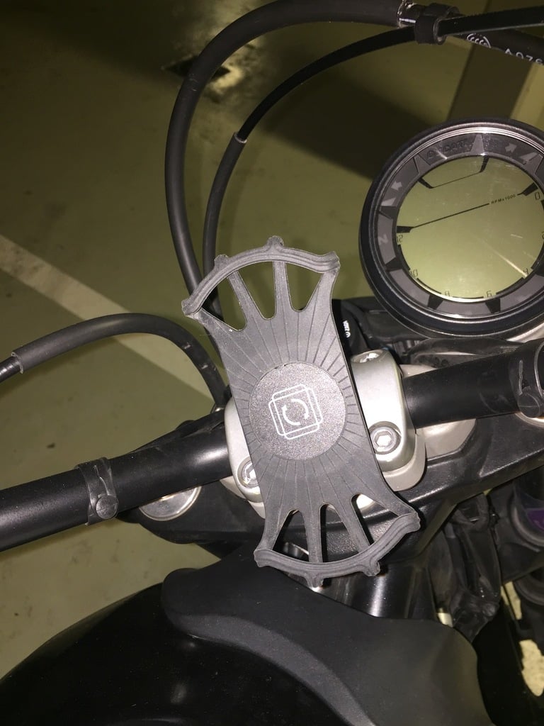 Din smartphone holdes sikkert på plads med fire kraftige gummibånd, der griber fast om hvert hjørne af telefonen. Den tilhørende plade monteres derefter på en robust sokkel, som fastgøres diskret på dit motorcykelstyr. En praktisk funktion er, at pladen let kan tages af og roteres, hvilket giver optimal visning og fleksibilitet under kørsel.
