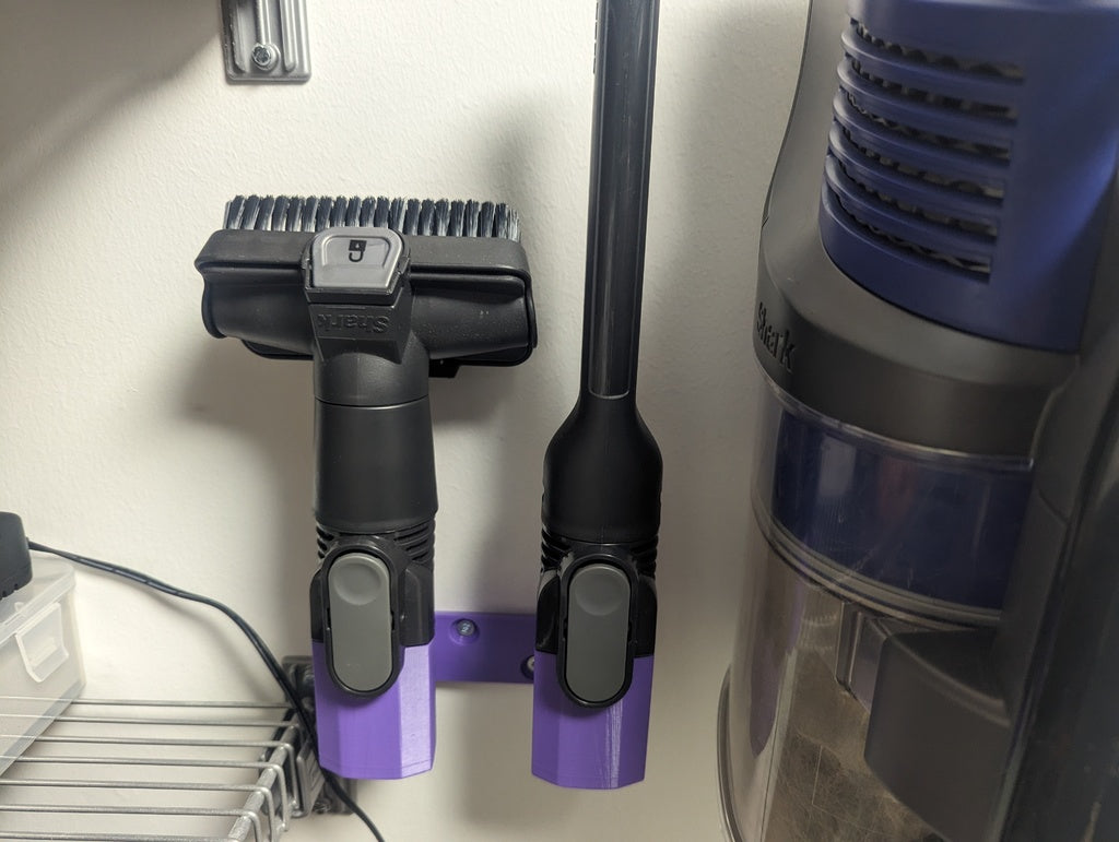 Denne vægmontering tilbyder en praktisk løsning til opbevaring af dine Shark støvsuger tilbehør. Med to dedikerede pladser giver den dig mulighed for at holde dine rengøringsredskaber organiseret og let tilgængelige. Monteringen skrues fast i væggen, hvilket sikrer en stabil placering og hjælper med at optimere opbevaringspladsen i dit hjem. En effektiv måde at holde styr på dit støvsugertilbehør, så det altid er klar til brug, når du skal gøre rent.