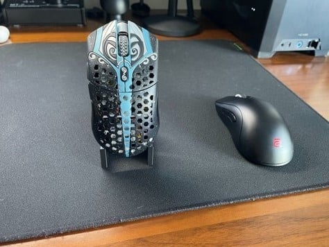 Dette display stativ er designet til at præsentere din gaming mus på en elegant og organiseret måde. Det er en ideel løsning til at udstille dine yndlingsmus på en hylde eller dit skrivebord, og det hjælper med at holde dit gaming setup ryddeligt. Stativet sikrer, at din mus står stabilt og er nem at få øje på, samtidig med at det beskytter den mod unødvendig slitage fra at ligge løst. Det enkle design integreres nemt i de fleste indretninger, hvilket gør det til et praktisk supplement for enhver, der ønsker at vise deres udstyr frem på en stilfuld måde.