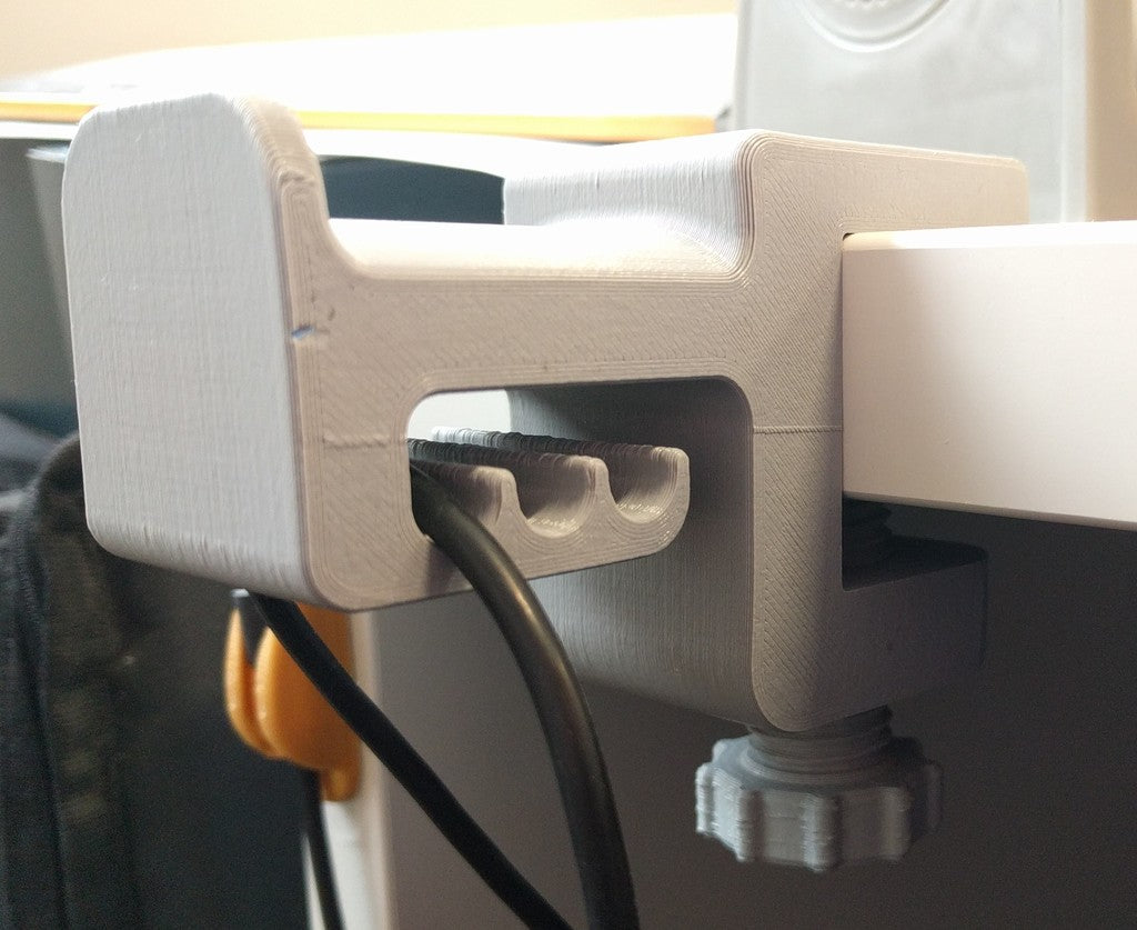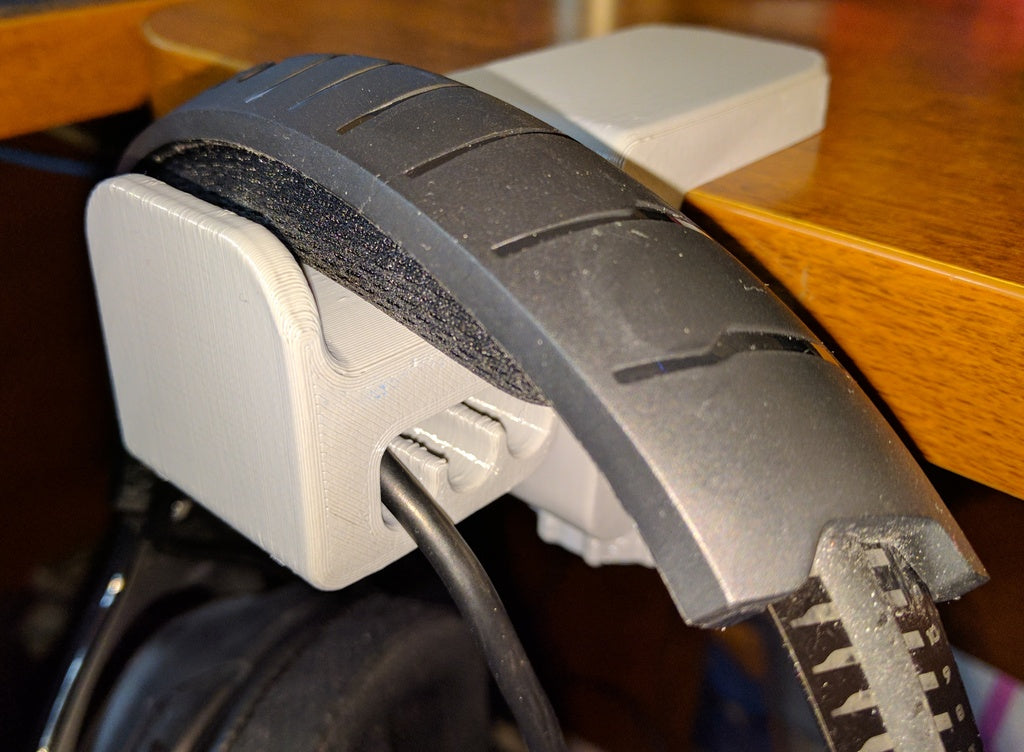 Holderen er designet til at rumme forskellige headset-størrelser og findes i to varianter: en standardmodel til hovedbånd op til 45 mm og en bredere version, der passer til hovedbånd på op til 55 mm. Dens dybe riller holder dine kabler organiseret og forhindrer dem i at blive sammenfiltrede, hvilket bidrager til et ryddeligt setup.