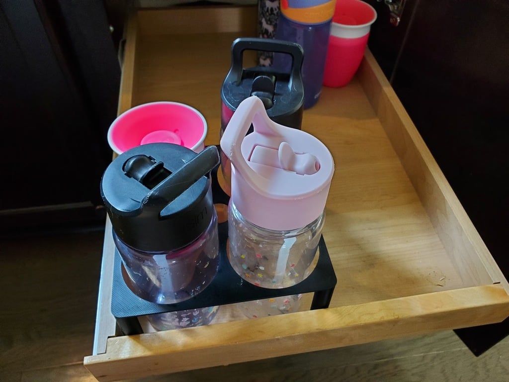 Hold styr på børnenes vandflasker med denne praktiske vandflaskeholder, der er designet til at skabe orden i skuffer og skabe. Denne organisator giver plads til op til fire flasker, og dens robuste design sikrer, at de står stabilt og ikke ruller rundt, selv når skuffen trækkes hurtigt ud. Med en cirkeldiameter på 80 mm er holderen kompatibel med mange populære børneflasker, herunder mærker som Contigo og Simple Modern, hvilket gør den til en alsidig løsning for de fleste husholdninger. Den er lige praktisk til flasker, der skal med i barnevognen på tur, som til dem der bruges derhjemme. Denne smarte opbevaringsløsning eliminerer rodet og gør flaskerne let tilgængelige, så du slipper for at skulle foretage en omfattende "competitor search" for at finde den ideelle organisator. Har du et større antal flasker, kan flere enheder nemt placeres side om side for at udvide opbevaringskapaciteten. En ideel tilføjelse til et velorganiseret køkken eller børneværelse.