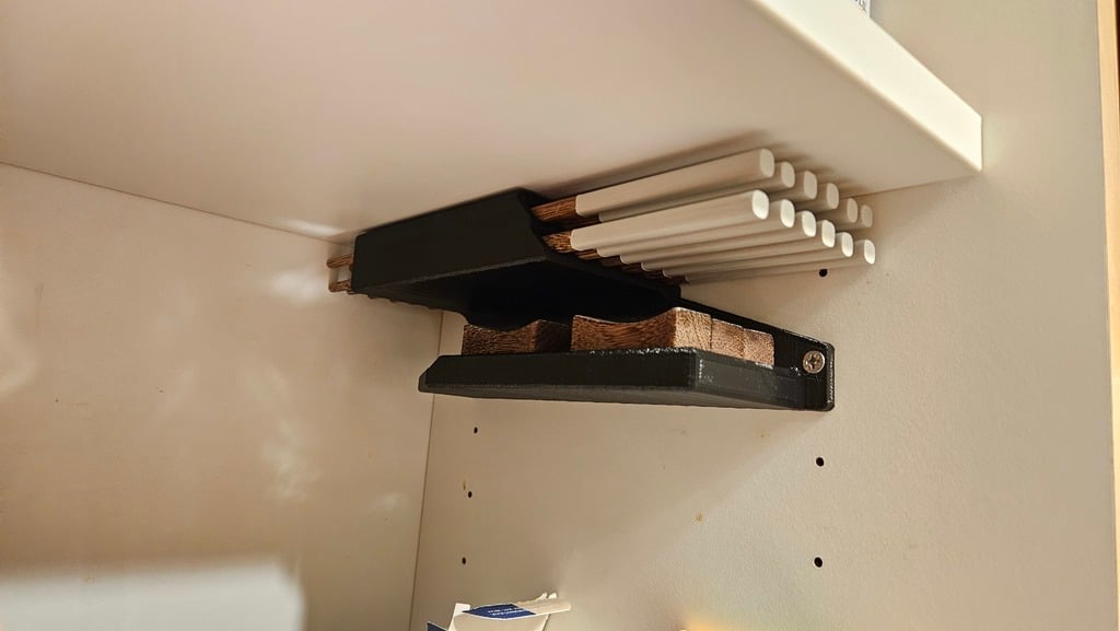 Denne spisepindeholder tilbyder en praktisk løsning til at organisere spisepinde og spisepindestøtter i køkkenet eller spiseområdet. Den er designet til at rumme op til 12 par spisepinde og 6 spisepindestøtter, hvilket sikrer, at de holdes pænt samlet og let tilgængelige. Holderen har forborede huller til nem skruemontering, men kan også fastgøres med lim, hvilket giver fleksible placeringsmuligheder, der passer til forskellige indretninger.