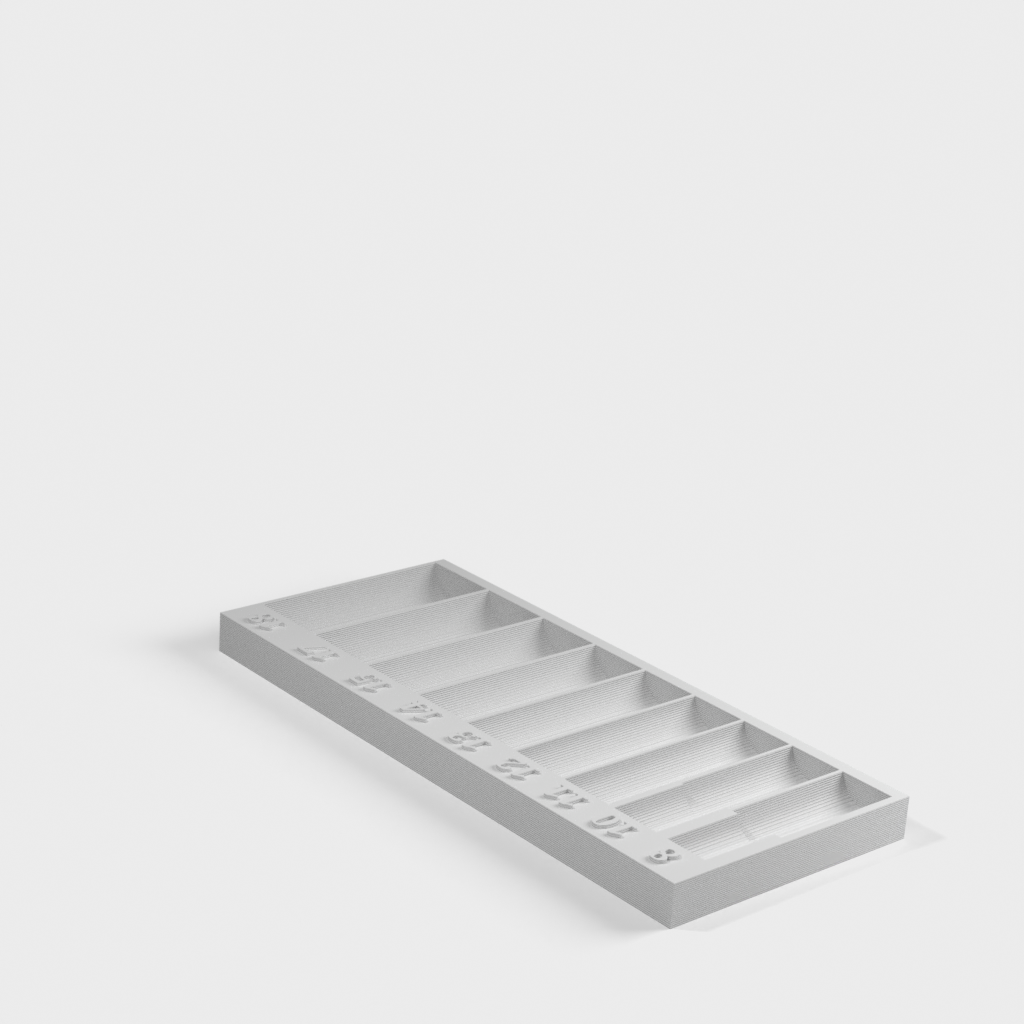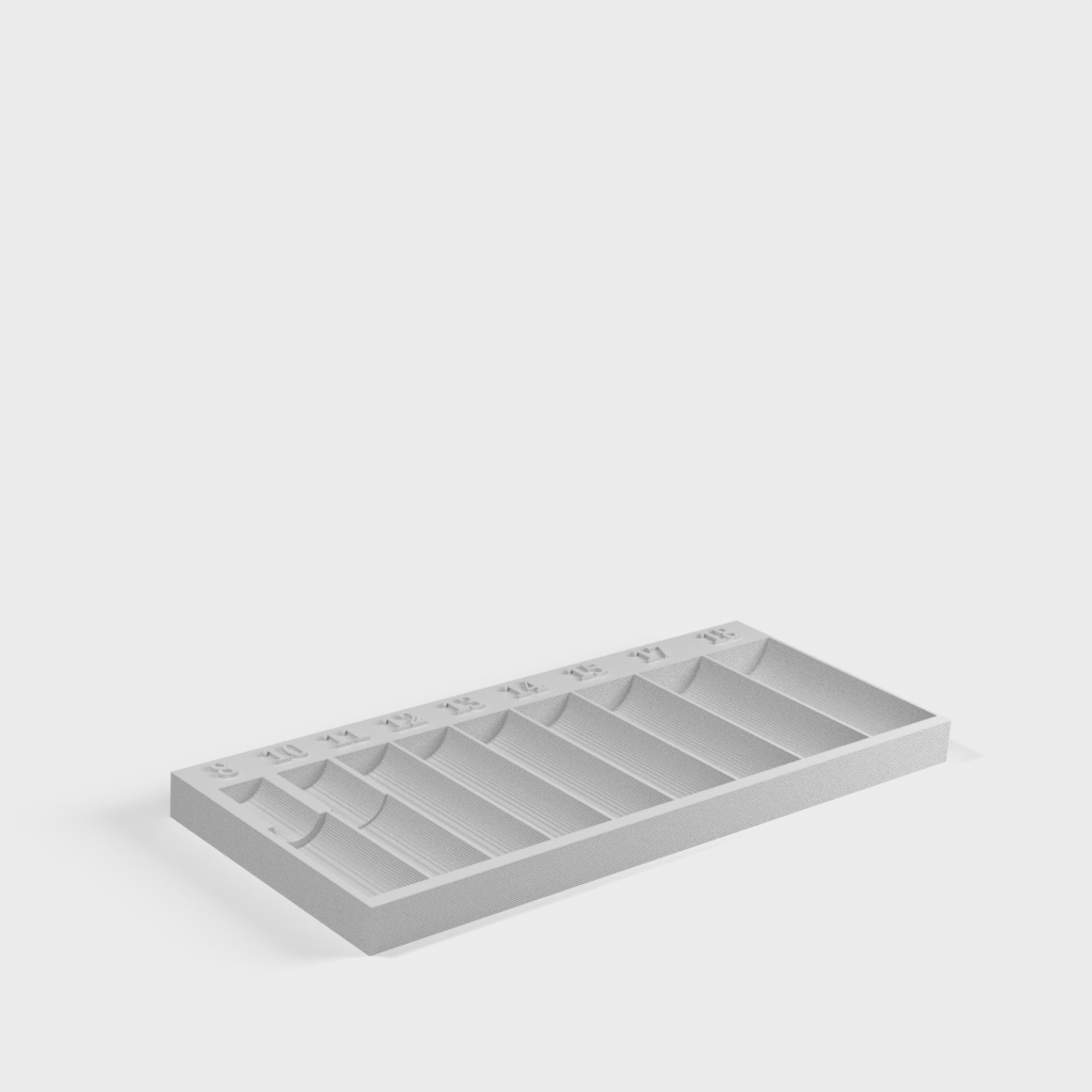 Organizeren er designet til at rumme toppe med en højde på cirka 64 mm og en diameter, der varierer fra 17 mm til 26 mm. Dette sikrer, at dine AutoCraft (eller lignende) toppe passer perfekt og forbliver på plads. Med denne organizer opnår du et bedre overblik over dit værktøj, hvilket gør det nemmere at finde den rette top hurtigt og effektivt, når du arbejder.
