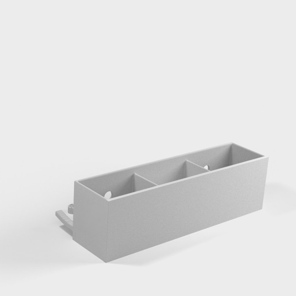 Denne praktiske tandbørsteholder er designet til vægmontering og giver en ryddelig opbevaringsløsning til dit badeværelse. Holderen er udstyret med riller i varierende størrelser – 8 mm, 9 mm og 10 mm – hvilket sikrer, at både store og små tandbørster kan placeres stabilt og inden for rækkevidde.