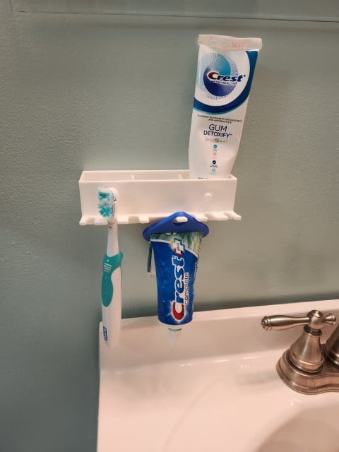 - Integrerede lommer bagpå til opbevaring af tandpasta.