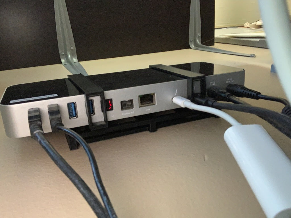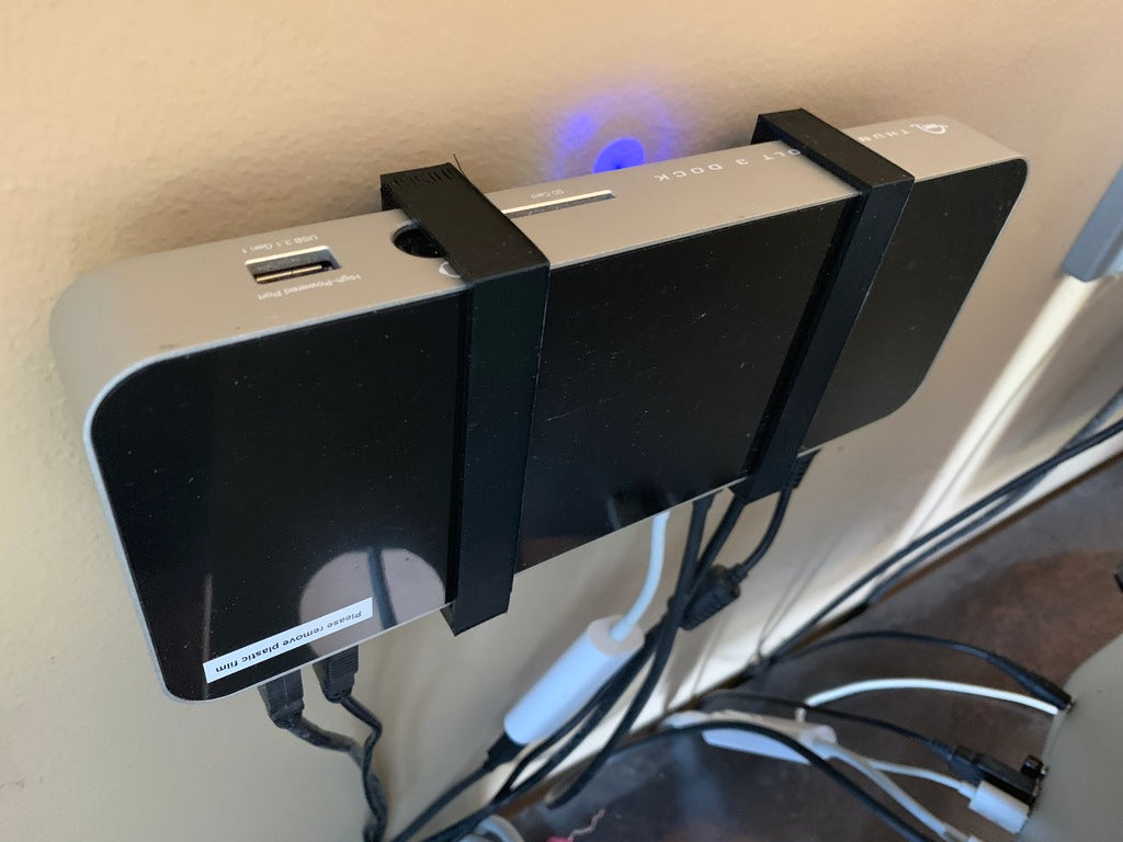 De specialdesignede kapper har åbninger i bunden, hvilket sikrer, at alle porte på din OWC Thunderbolt 3 Dock forbliver fuldt tilgængelige. Dette betyder, at du fortsat kan tilslutte og frakoble kabler uden besvær, mens docken forbliver sikkert monteret og ude af syne. Selvom dette beslag er optimeret til OWC Thunderbolt 3 Dock, kan designet potentielt tilpasses til lignende enheder med mindre justeringer.
