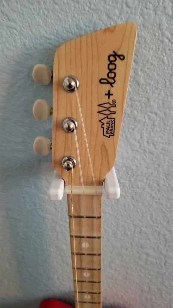 Dette funktionelle vægbeslag til guitar er designet specifikt til Loog Mini Akustisk Guitar, og tilbyder en elegant og praktisk løsning til at holde børnenes instrumenter organiseret og let tilgængelige. Som en ideel guitarophæng til væg, er dette beslag omhyggeligt udformet for at sikre, at din Loog Mini guitar hænger sikkert og stabilt. De skrå kroge og den præcise bredde og dybde er optimeret til at holde guitaren fast på plads, samtidig med at den holdes i en passende afstand fra væggen. Dette muliggør en flot, vertikal ophængning, som både beskytter instrumentet mod skader og præsenterer det æstetisk i ethvert rum. Med en halsbredde på cirka 30 mm, garanteres en perfekt pasform for Loog Mini, hvilket gør dette beslag til en uundværlig del af ethvert musikalsk hjem.