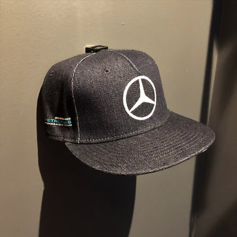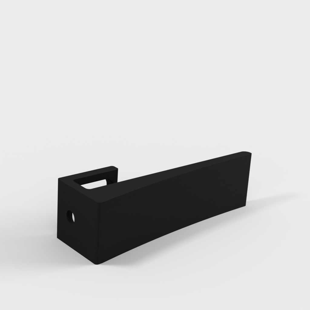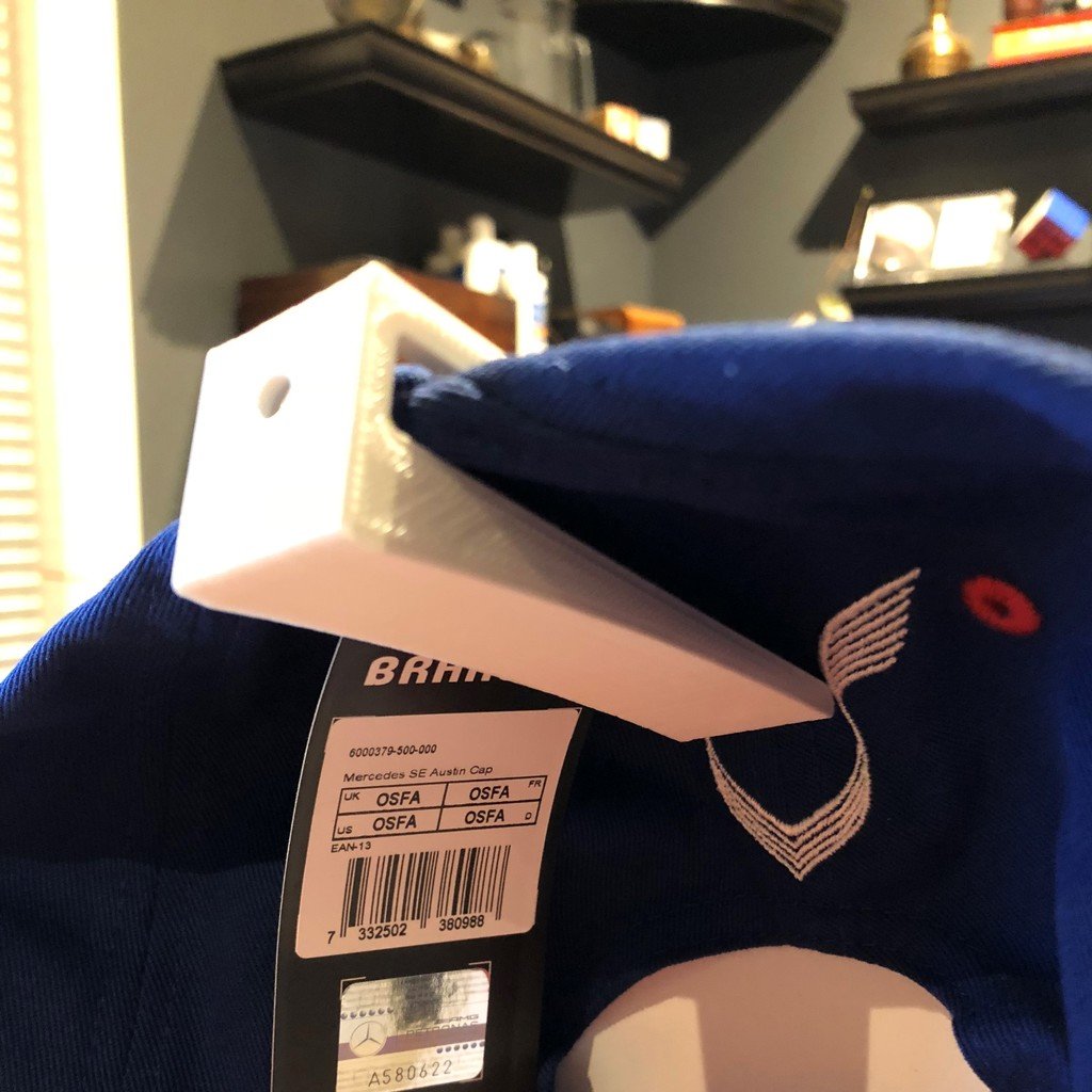 Denne vægmonterede displayholder er designet til elegant at fremvise stive baseballkasketter. Kasketten holdes løst fast ved toppen omkring knappen, mens den nedre forlængelse støtter resten af hatten. Dette skaber en svævende effekt, hvor holderen kun er synlig fra oven, hvilket giver et minimalistisk og diskret udtryk. For at opnå den mest diskrete visning kan holderen matches i farve med kasketten.