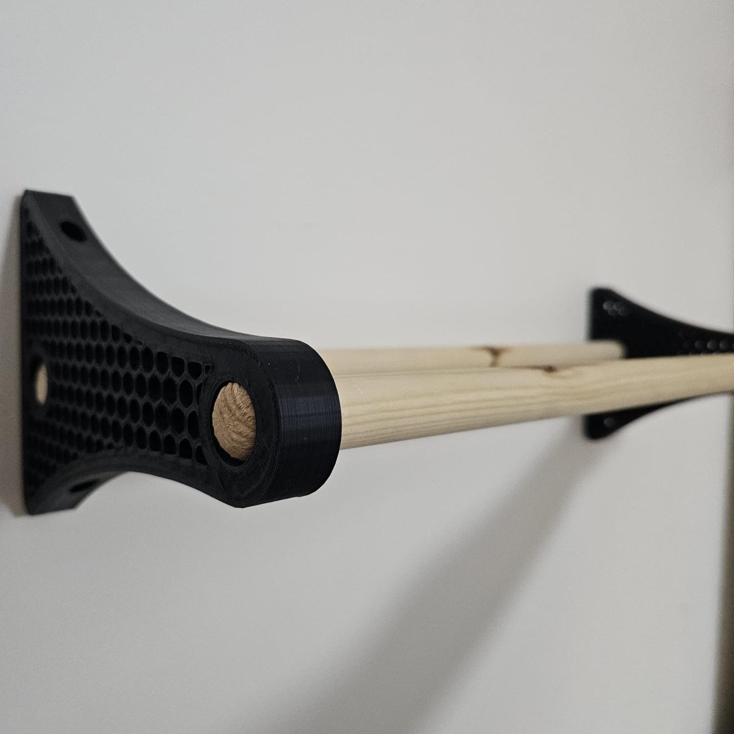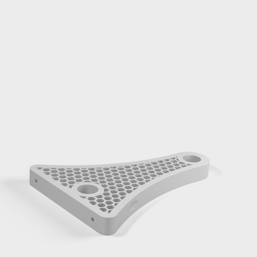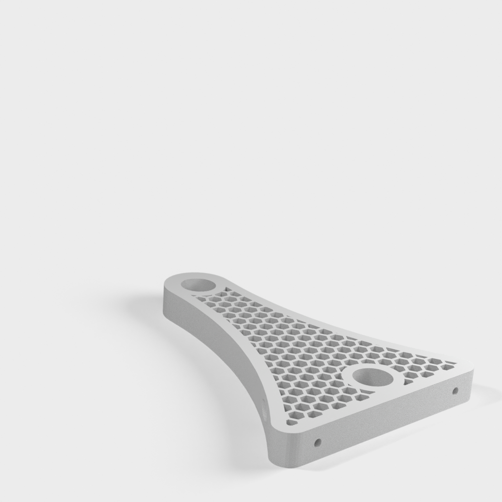 Dette vægmonterede beslag er en praktisk løsning til opbevaring af 3D-printer filamentruller. Beslaget er udformet med et hexagonalt mønster og er specielt designet til at passe til standard 23 mm dyvelstænger, som ofte bruges i Europa. Ved at montere disse beslag på væggen kan du skabe en tilpasset hyldeløsning, der holder dine filamenter organiseret og let tilgængelige. Det bidrager til et ryddeligt og funktionelt arbejdsområde, hvor dine materialer er sikkert opbevaret og klar til brug.