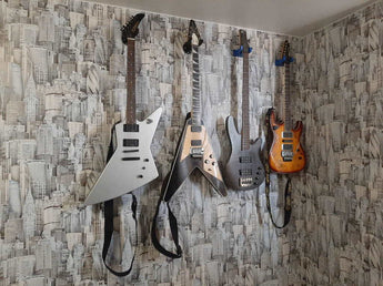 Uanset om du har en akustisk eller elektrisk guitar, vil dette ophæng sørge for, at dit instrument er sikkert og pænt organiseret, og det bidrager til et ryddeligt musikrum.