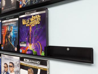 Vægophænget er dimensioneret til at passe standard Blu-ray 4K-etuier (135mm x 170mm x 15mm) og tilbyder samtidig en smule fleksibilitet til etuier med papirsleeves. Med et intelligent låsesystem kan flere enheder forbindes, hvilket sikrer, at dine etuier hænger i en pæn og lige række uden at skæve.