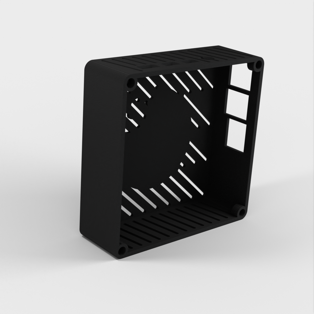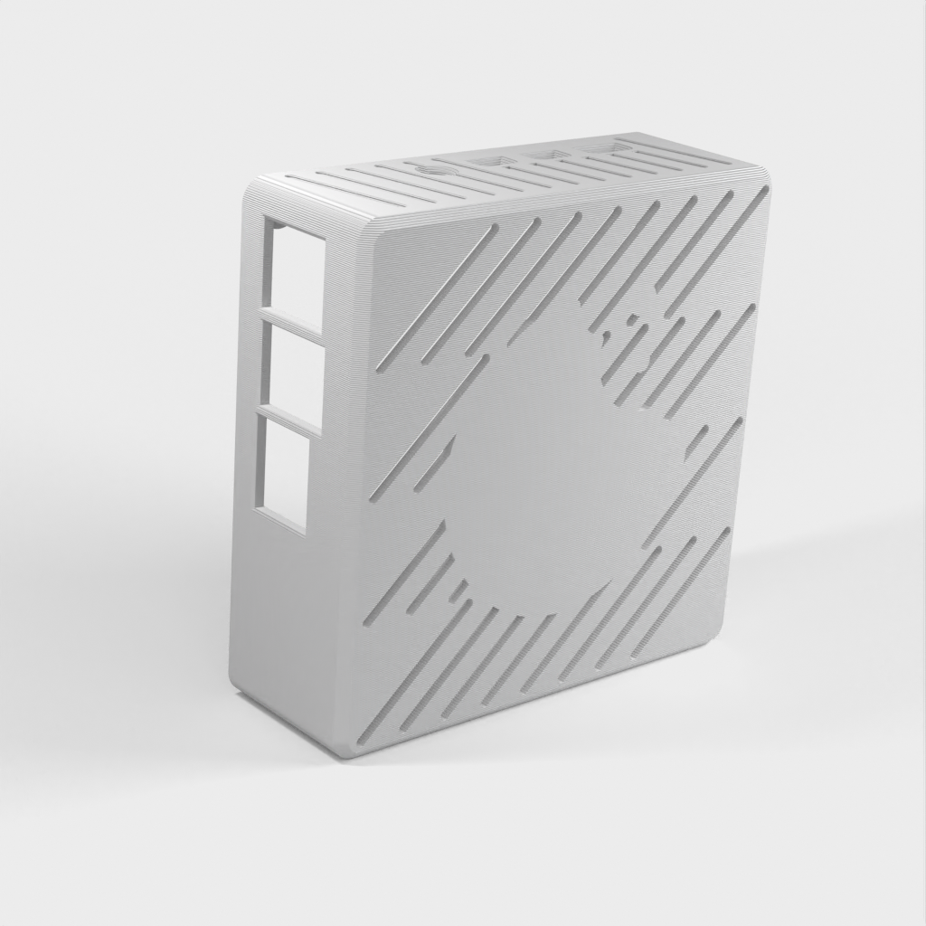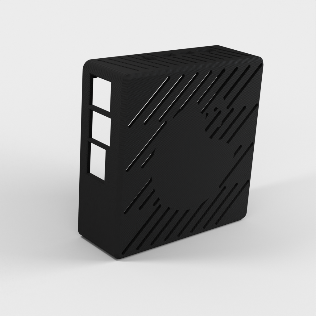 Etui til Raspberry Pi 3 eller 4 (Tynd Klient). Dette etui er udstyret med en simpel blæser indeni for at holde alt køligt. Den holdes samlet ved hjælp af 5x3mm magneter, og inkluderer et 100x100mm mønster til VESA i bag/bund. Perfekt til dig der vil beskytte din Raspberry Pi og samtidig sørge for optimal afkøling.