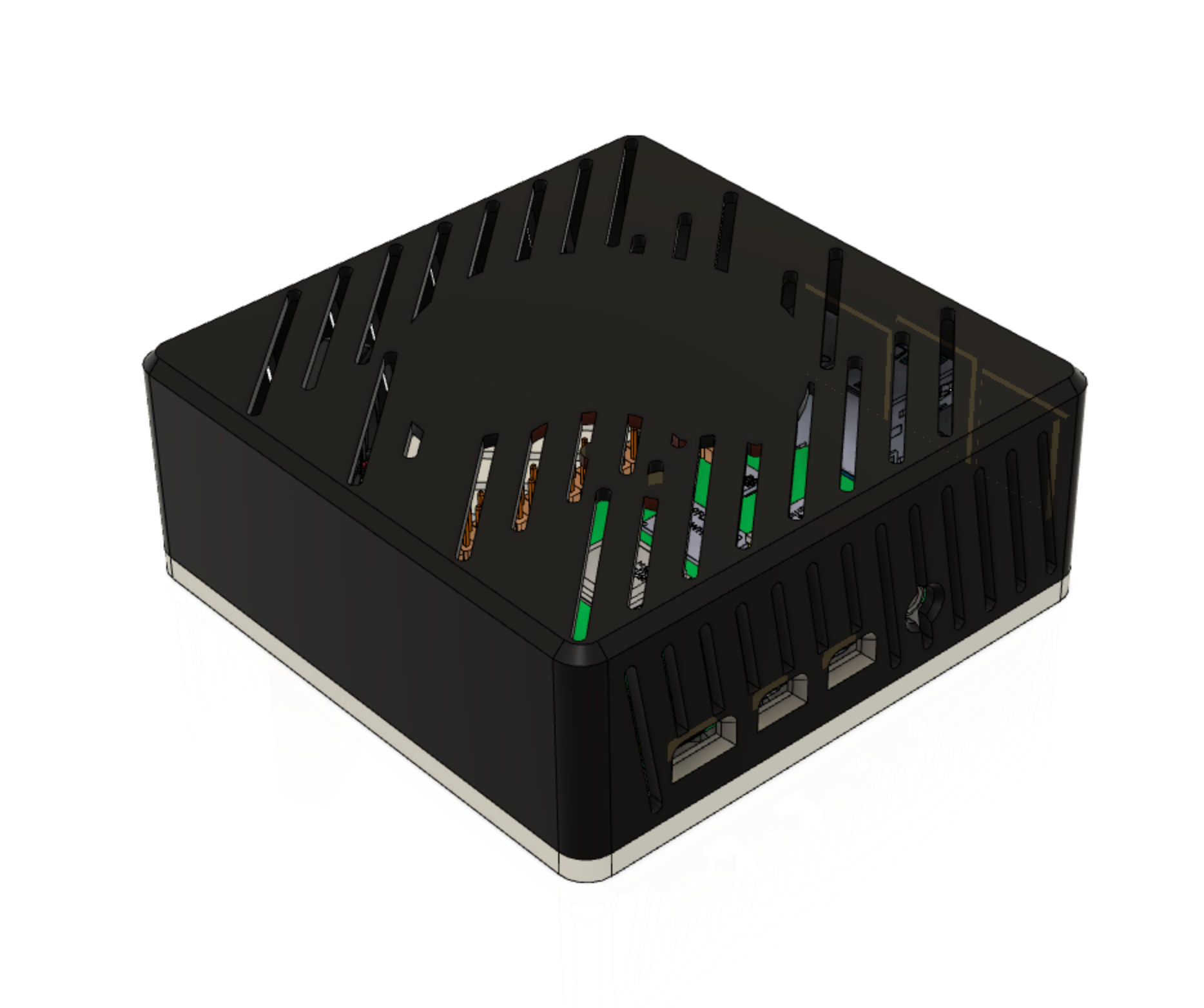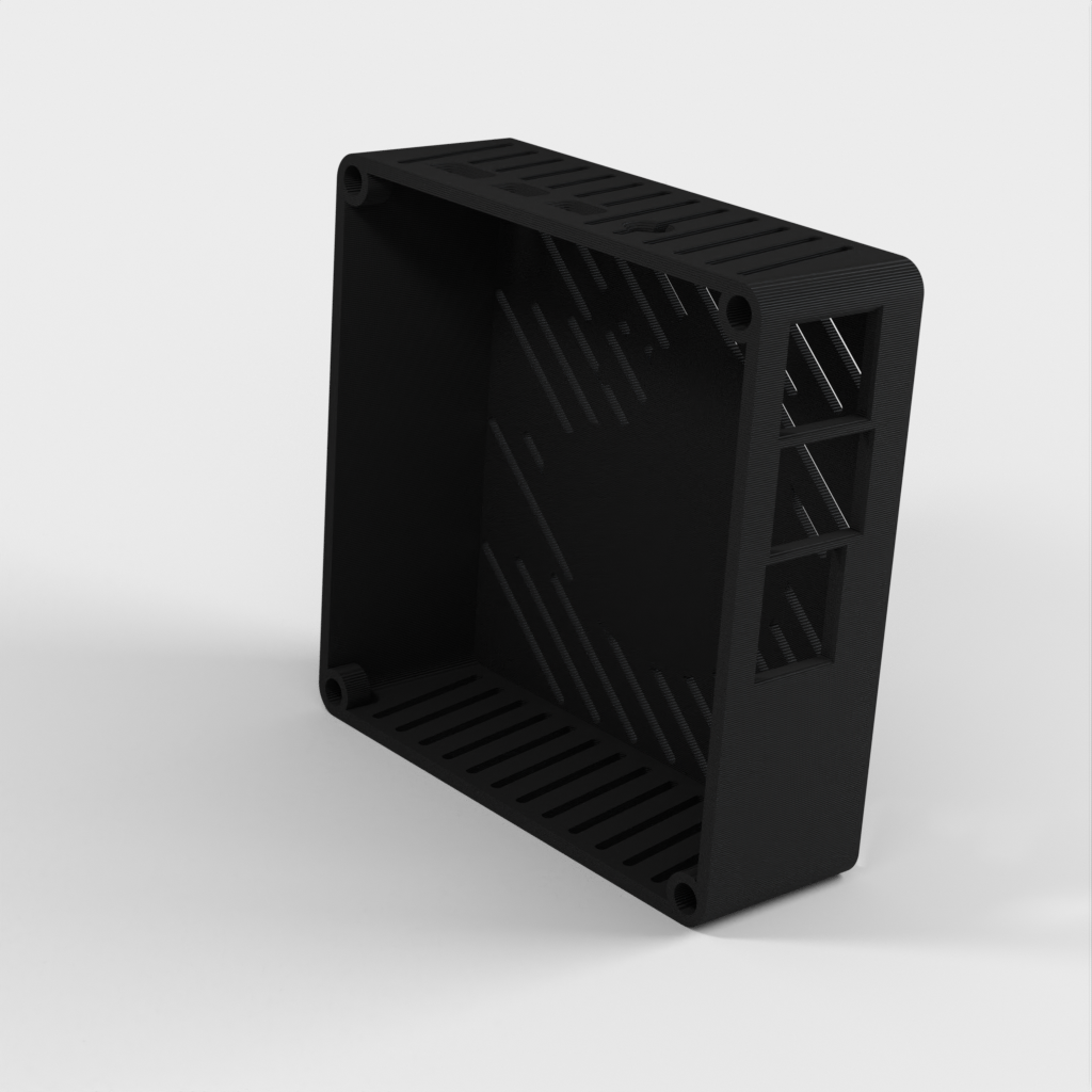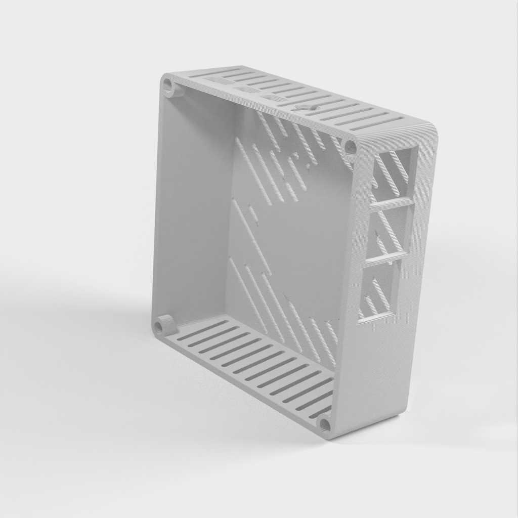 Etui til Raspberry Pi 3 eller 4 (Tynd Klient). Dette etui er udstyret med en simpel blæser indeni for at holde alt køligt. Den holdes samlet ved hjælp af 5x3mm magneter, og inkluderer et 100x100mm mønster til VESA i bag/bund. Perfekt til dig der vil beskytte din Raspberry Pi og samtidig sørge for optimal afkøling.