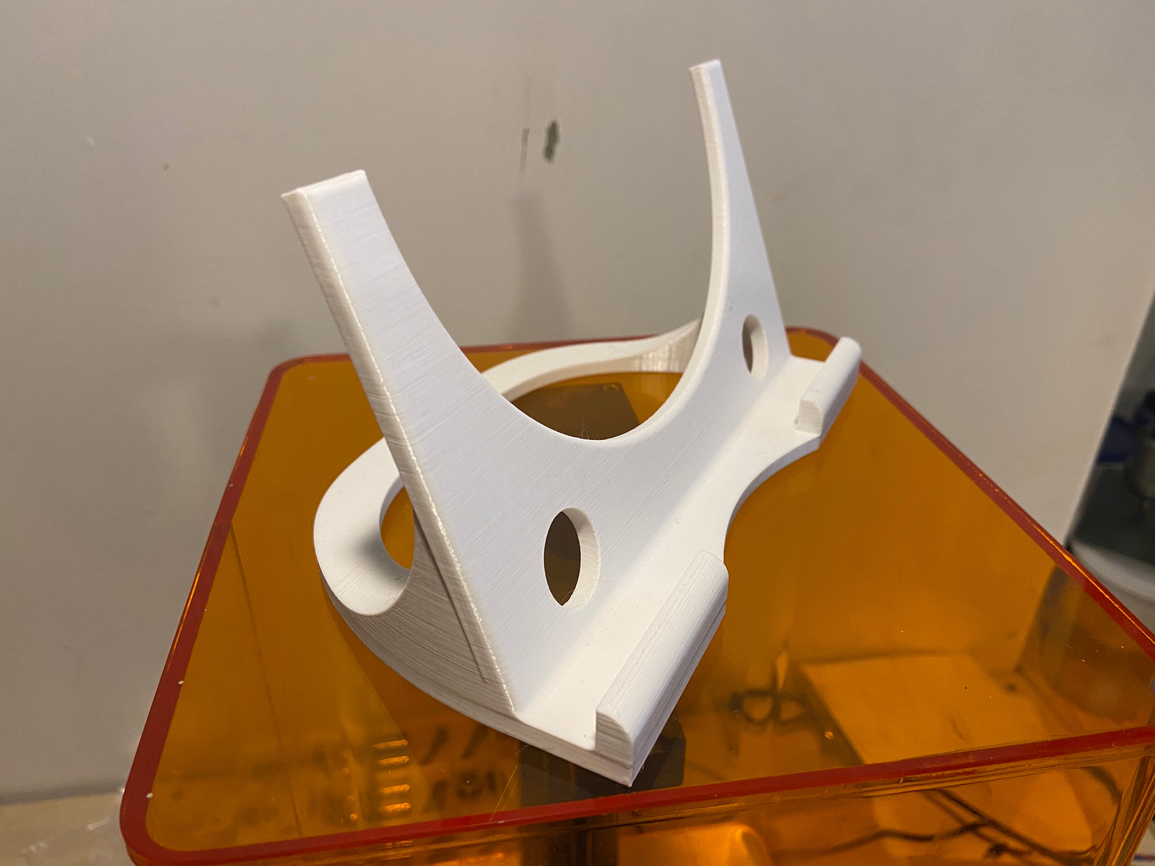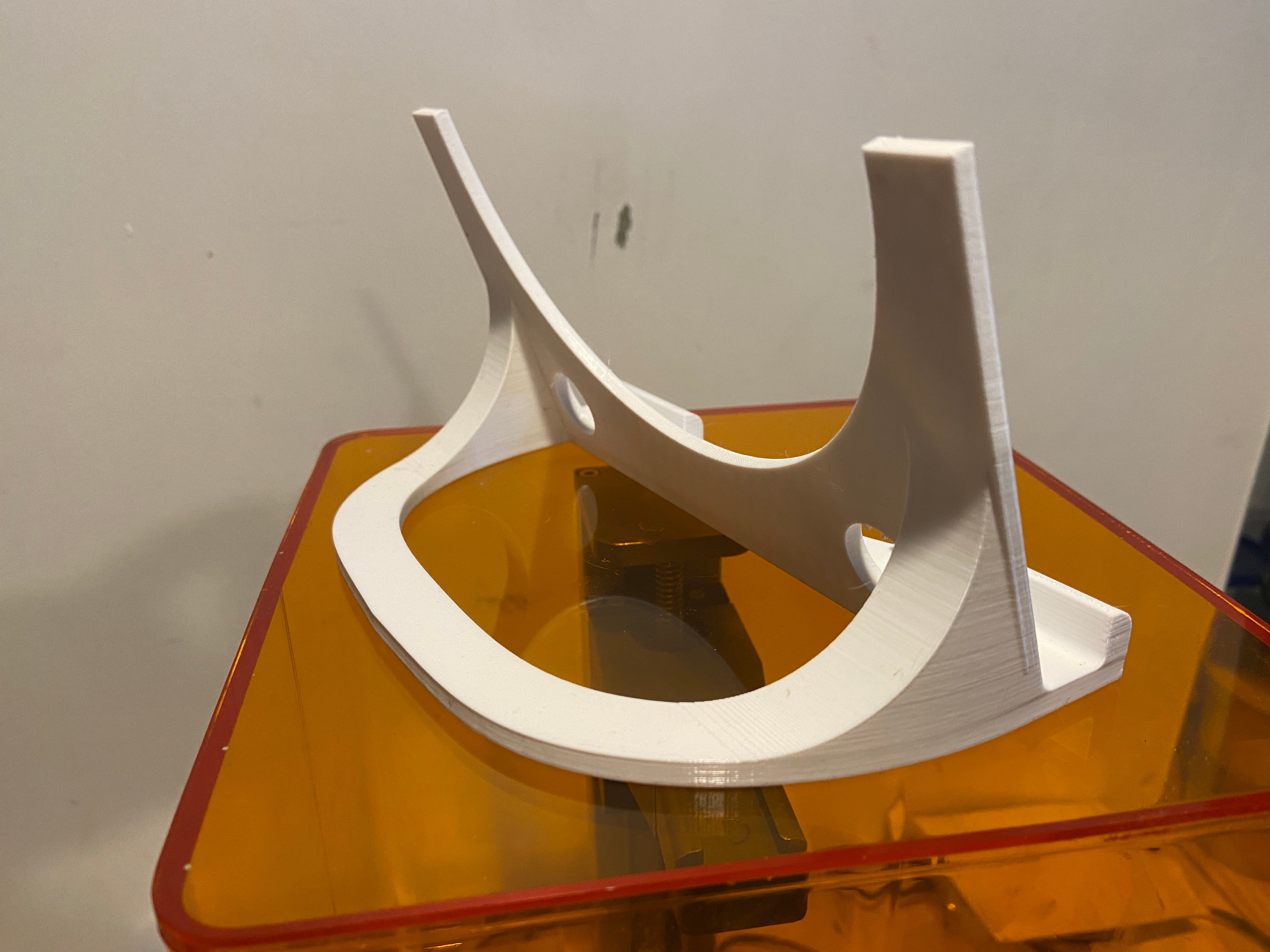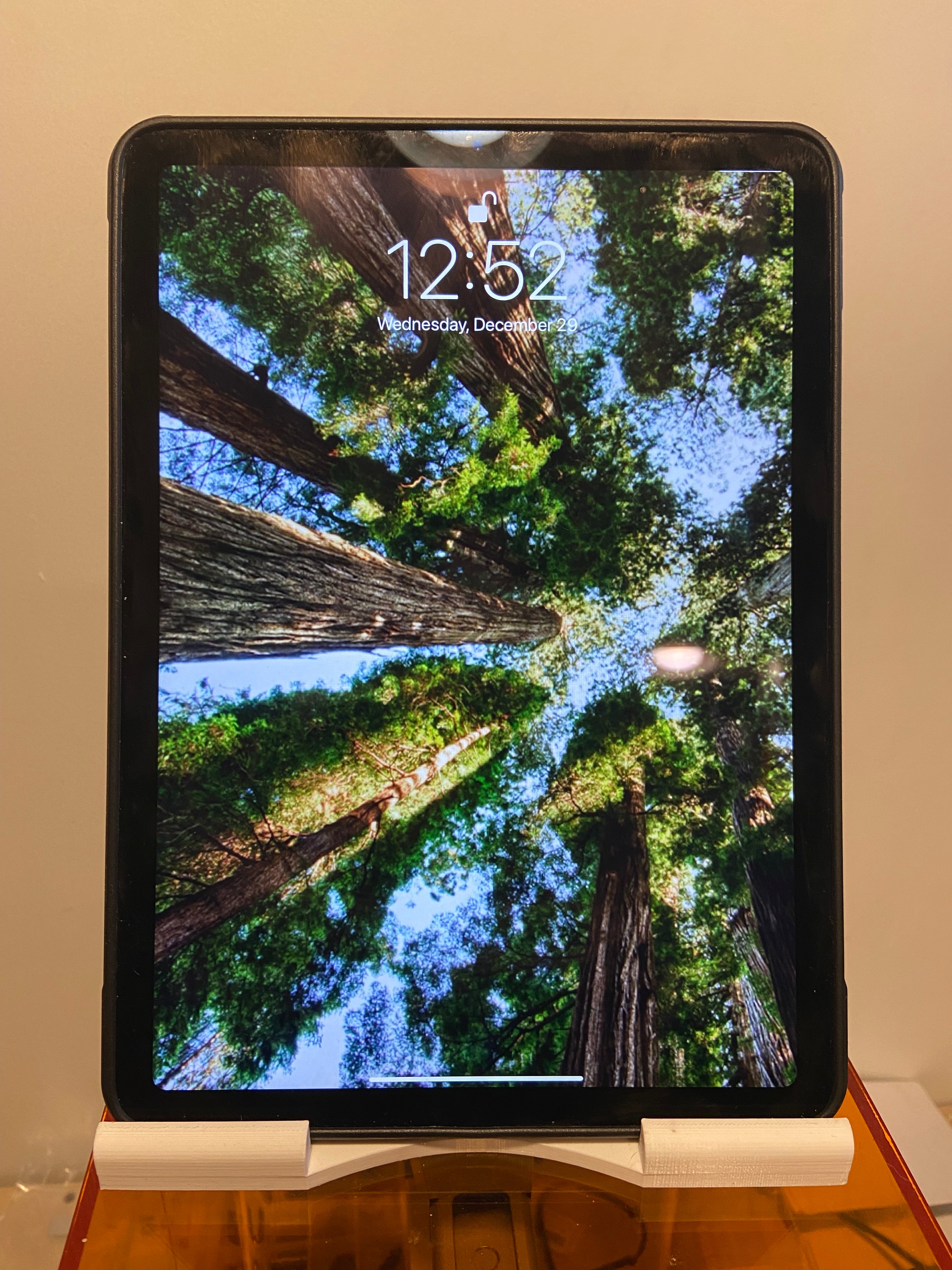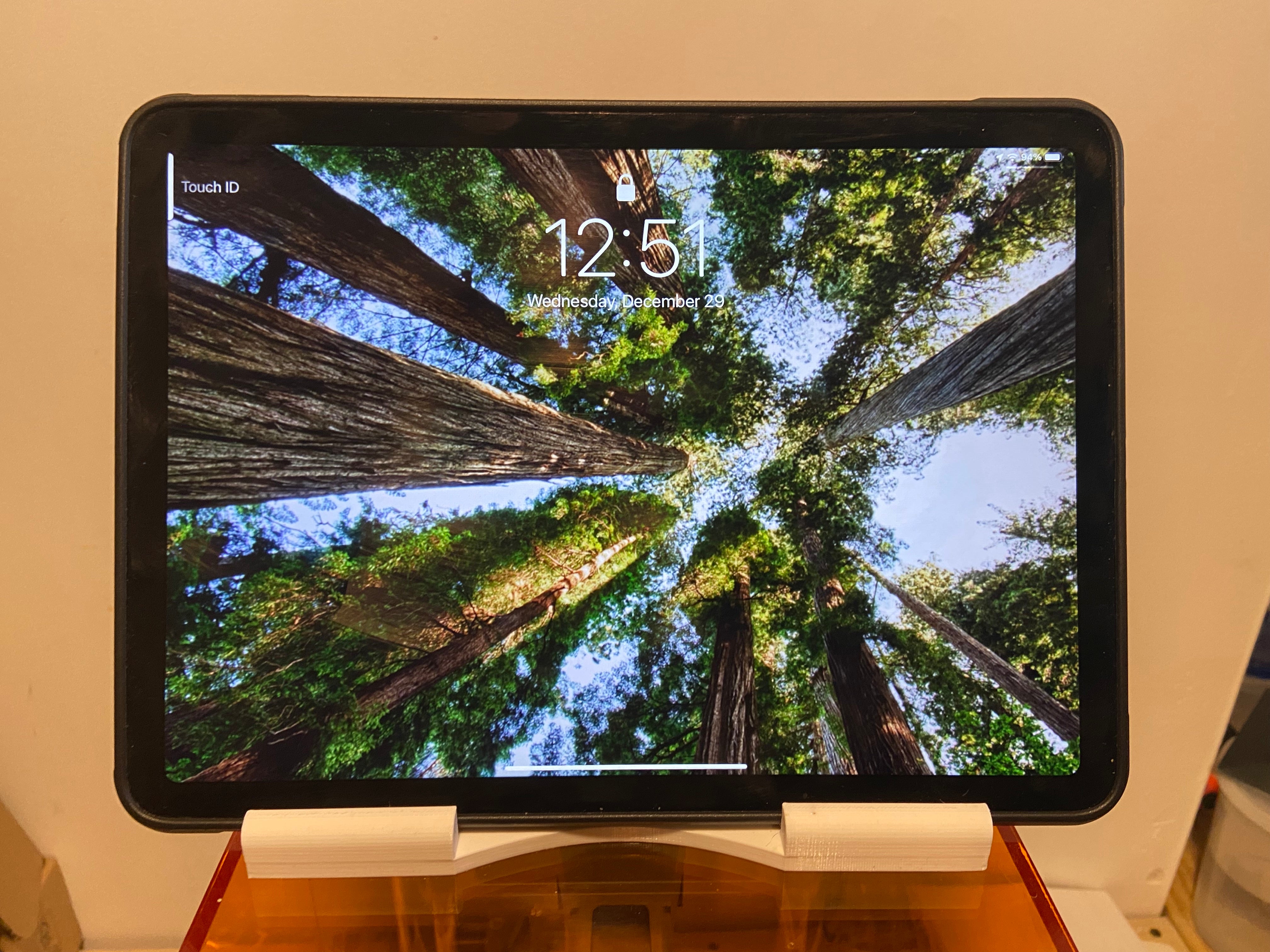 Robust iPad-stativ designet til at holde din iPad på plads, mens du anvender den. Dens store kanal gør det muligt at bruge stativet selv med et beskyttende etui på din iPad. Denne vil ikke falde ved tryk på skærmen under valg eller swipe. Dette produkt er bygget til at modstå gentagen brug. Billederne viser stativet placeret på toppen af en harpiksprinter, men det er printet på en Prusa MK3S.