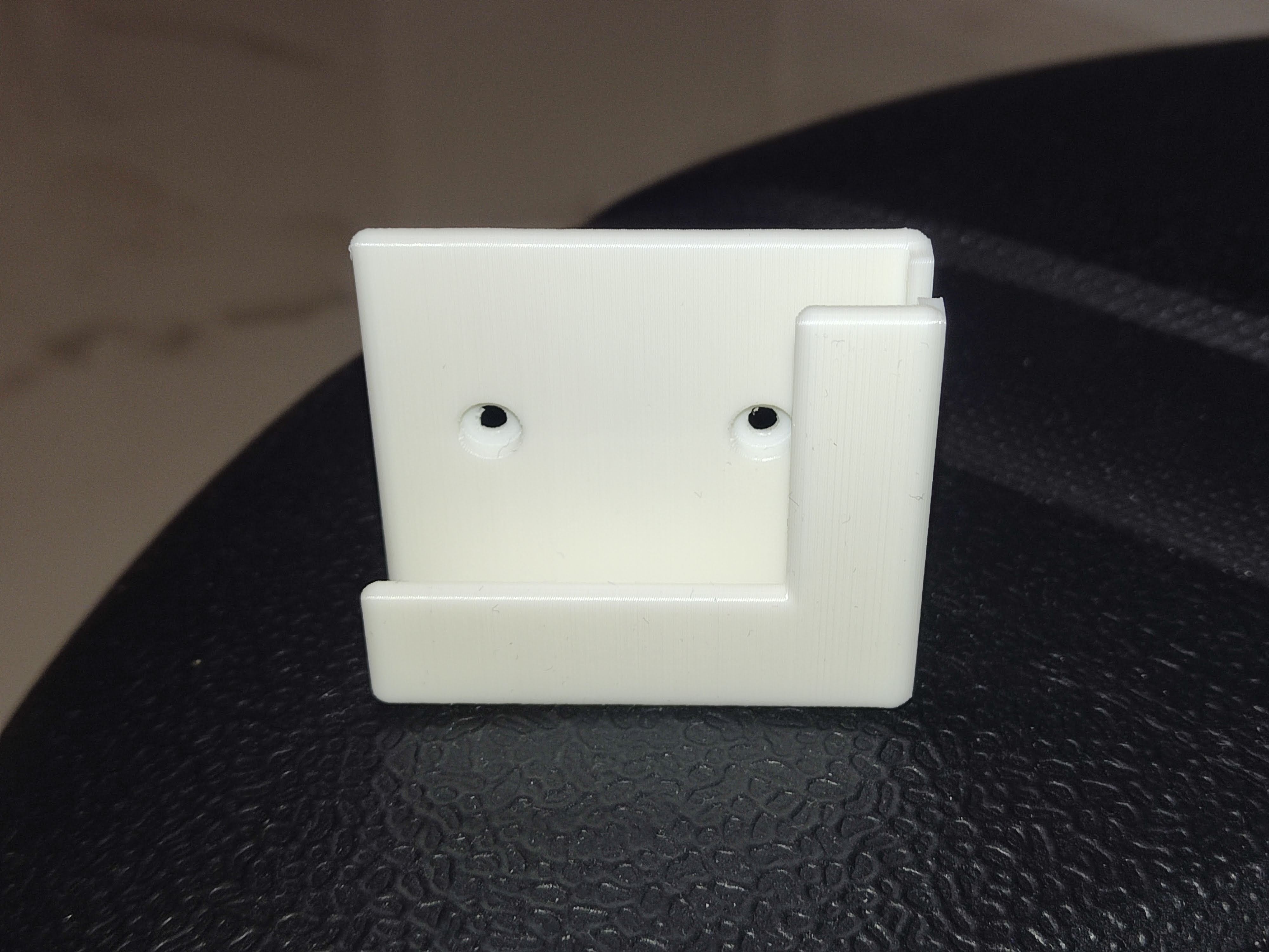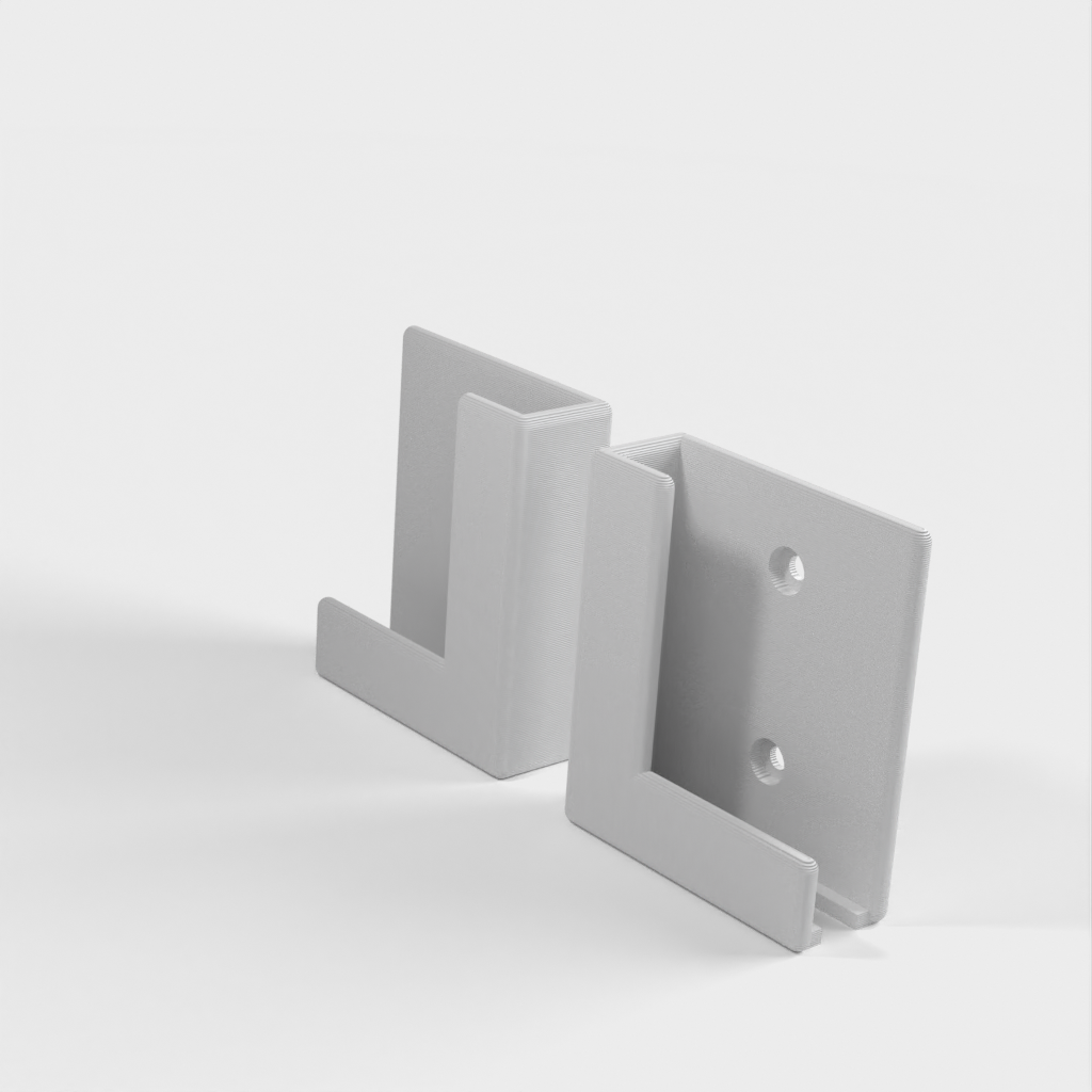 Enkel og afrundet universel vægmontering til tablet og/eller telefon. Denne montering har allerede skruehuller, så den er klar til at blive monteret.