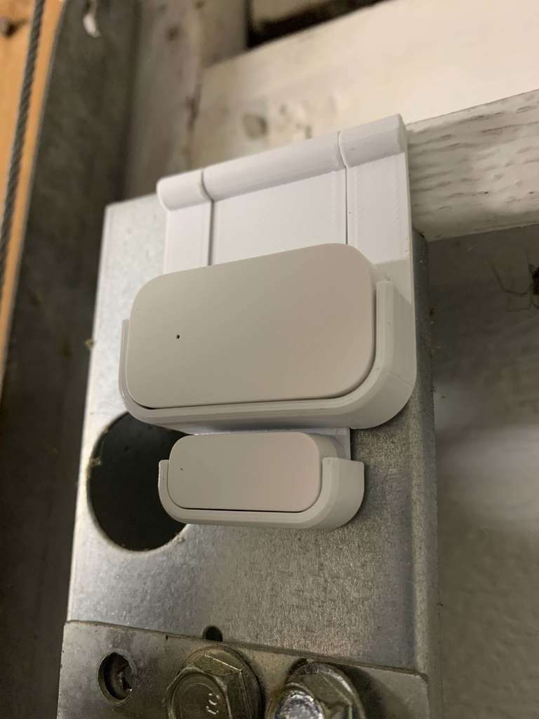 Dette er en Aqara kontakt sensor beslag til din garageport. Denne enkle løsning hjælper med at overvåge din garageports tilstand. Alt passer sammen med tryk og Aqara kontakt sensoren forbliver på plads. Du skal bare bruge et kommandostrimmel for at sætte den på din garageport.
