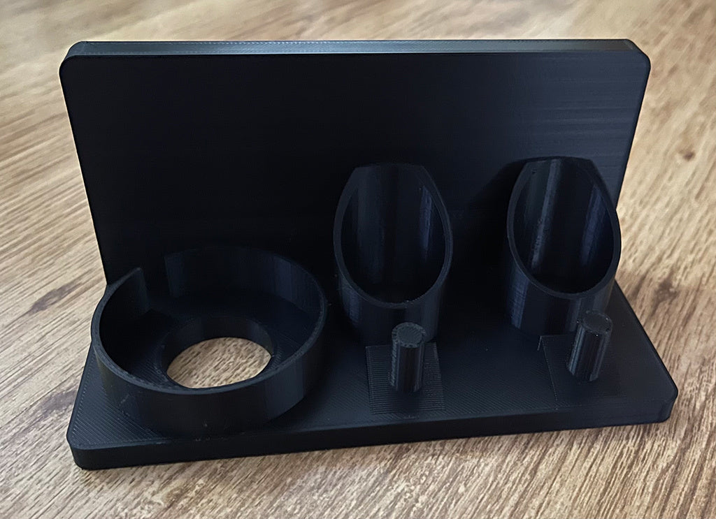 Simpel holder til 2 Oral-B iO serie 7, 8 og 9 tandbørster samt 1 oplader.