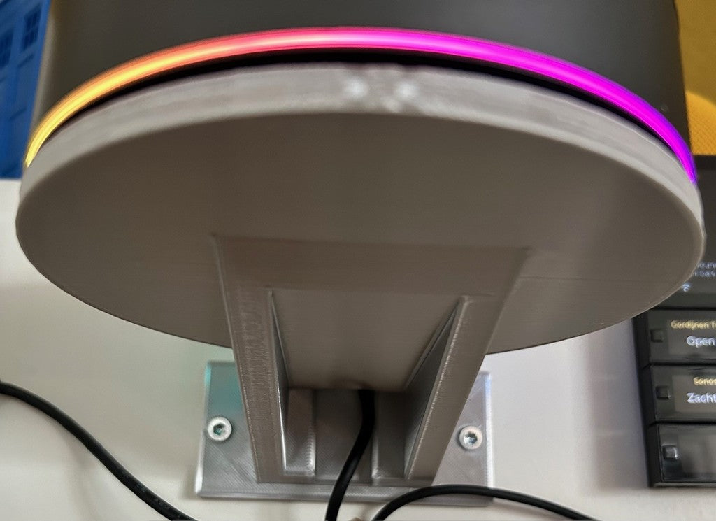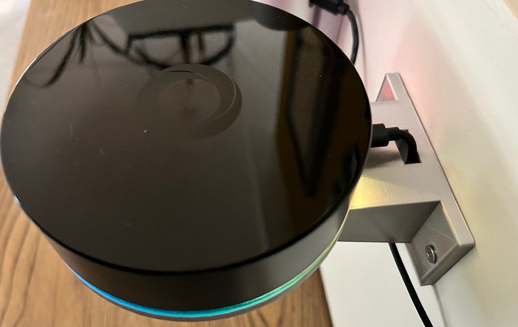 Dette er en vandret vægmontering til Athom Homey Pro 2023 (hockey puck-modellen). Det har et kabelhul på bagsiden, så du kan lede ledningen ind fra neden for at gøre det endnu pænere.