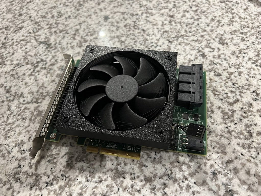 Enhance the cooling performance of your LSI 9300-16i with this custom-designed Noctua NF-A9x14 fan shroud. This fan shroud is specifically tailored for the LSI 9300-16i card, allowing for efficient heat dissipation by utilizing a premium Noctua NF-A9x14 HS-PWM fan. By mounting this fan shroud, you can effectively manage the heat generated by the HBA, ensuring optimal operating temperatures for your system.