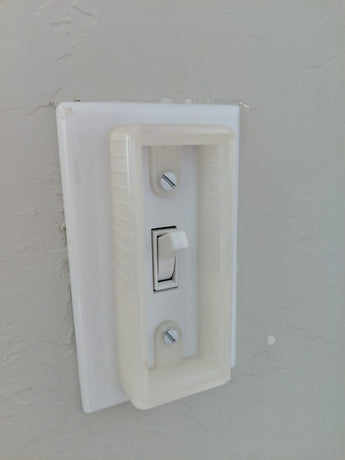 Beslaget fungerer som en praktisk holder for din Philips Hue lysdæmperfjernbetjening, så den altid er inden for rækkevidde. Den fastholder fjernbetjeningen sikkert med en diskret kant, der forhindrer den i at falde ud. Samtidig giver det let adgang til den underliggende lyskontakt; du skal blot fjerne lysdæmperen. Dette design sikrer, at du kan skifte mellem traditionel brug af lyskontakten og smart styring via din Philips Hue fjernbetjening uden besvær.