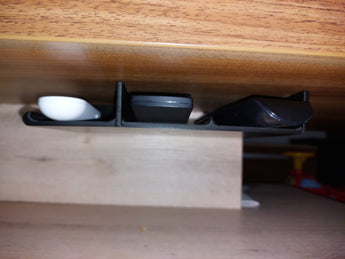 Denne fjernbetjeningsholder er designet til at skabe orden og minimere rod i stuen ved at tilbyde en smart opbevaringsløsning til dine fjernbetjeninger og små elektroniske enheder. Holderen monteres diskret under et bord eller en hylde ved hjælp af dobbeltsidet tape, hvilket sikrer, at dine fjernbetjeninger er lige ved hånden, når du har brug for dem, men ude af syne, når de ikke er i brug.